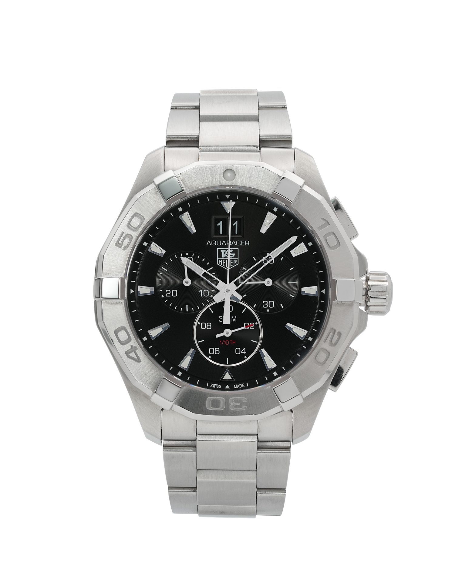 This Tag Heuer Aquaracer CAY1110.BA0927 has a black baton dial and a bracelet strap. This Tag Heuer has undergone a thorough inspection of accuracy, functionality and condition at our Tag Heuer certified service centre to determine the level of reconditioning required to meet our strict standards. It has also been checked against our records to ensure authenticity. All our watches have a 24-month warranty for your peace of mind.