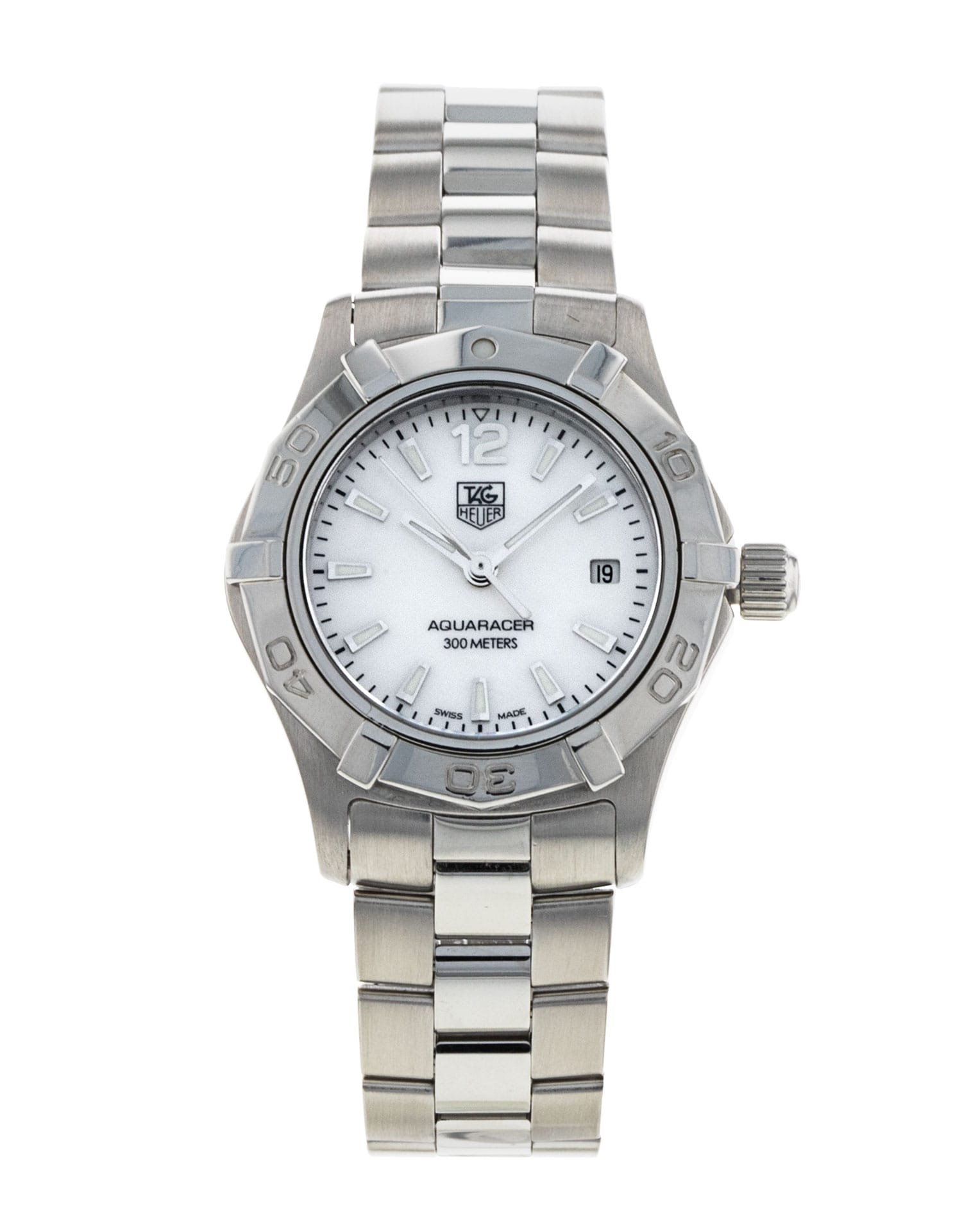 This Tag Heuer Aquaracer WAF1414.BA0823 has a mother of pearl white baton dial and a bracelet strap. This Tag Heuer has undergone a thorough inspection of accuracy, functionality and condition at our Tag Heuer certified service centre to determine the level of reconditioning required to meet our strict standards. It has also been checked against our records to ensure authenticity. All our watches have a 24-month warranty for your peace of mind.