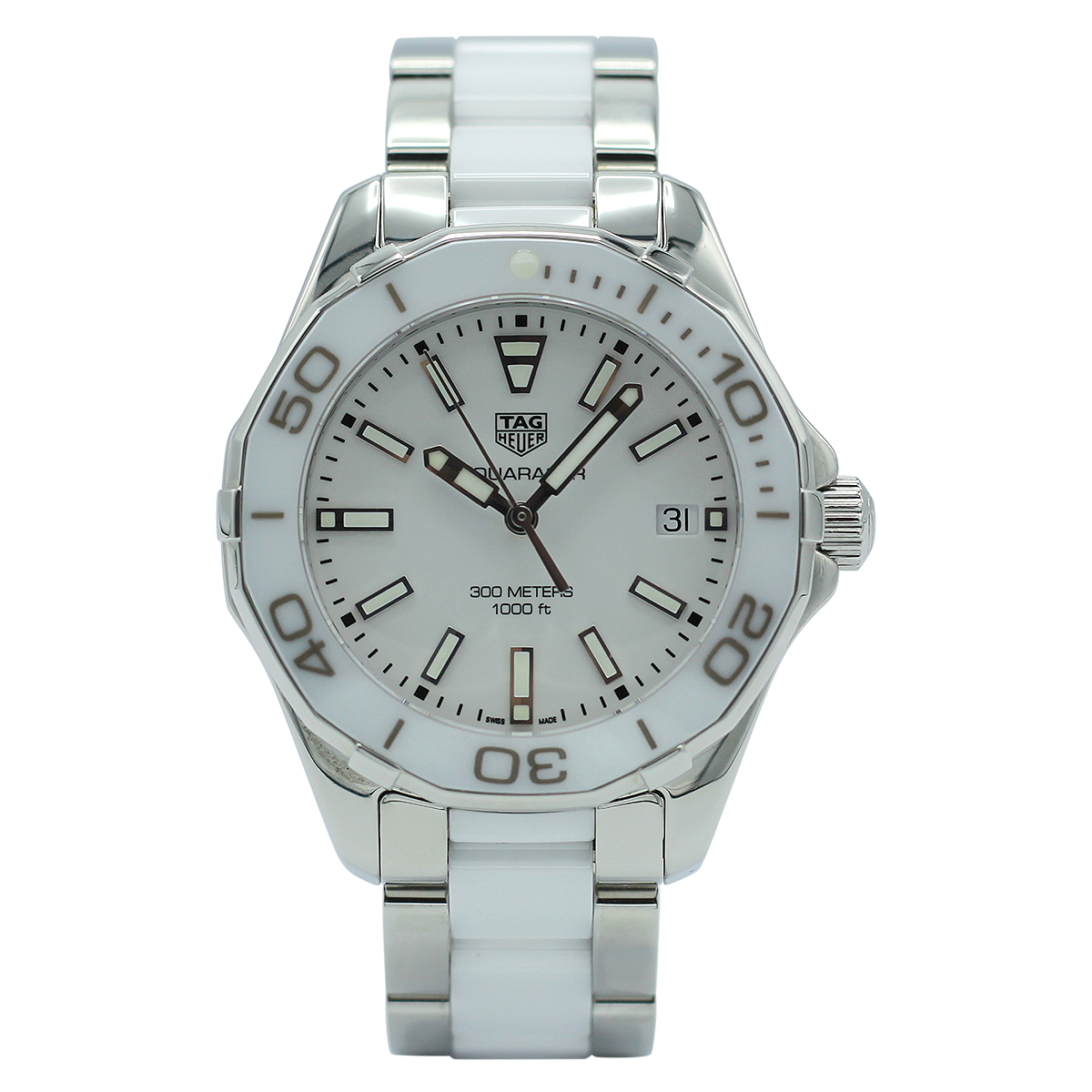 This Tag Heuer Aquaracer WAY131B.BA0914 has a white baton dial and a bracelet strap. This Tag Heuer has undergone a thorough inspection of accuracy, functionality and condition at our Tag Heuer certified service centre to determine the level of reconditioning required to meet our strict standards. It has also been checked against our records to ensure authenticity. All our watches have a 24-month warranty for your peace of mind.