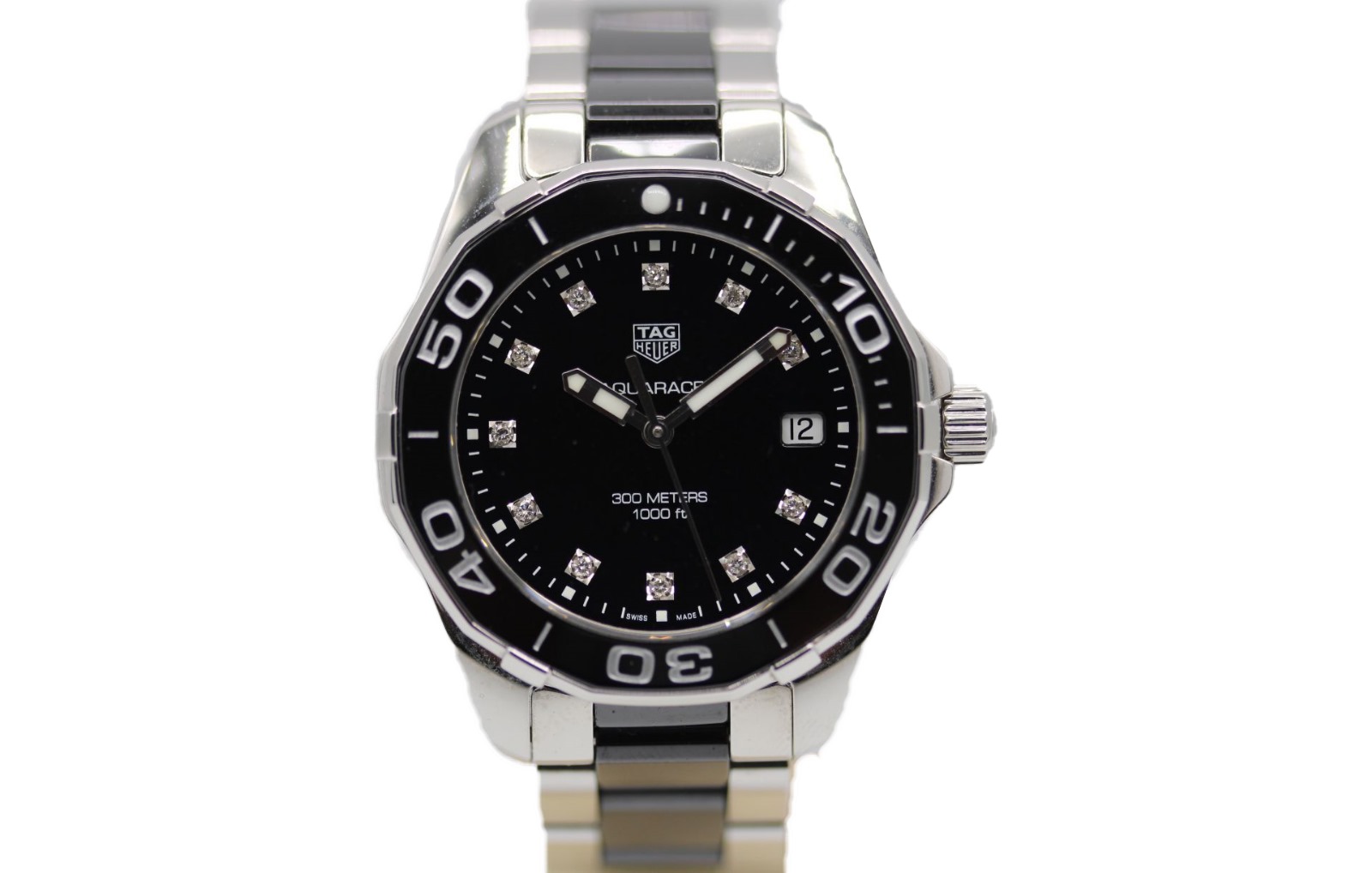 This Tag Heuer Aquaracer WAY131C.BA0913 has a black diamond dial and a bracelet strap. This Tag Heuer has undergone a thorough inspection of accuracy, functionality and condition at our Tag Heuer certified service centre to determine the level of reconditioning required to meet our strict standards. It has also been checked against our records to ensure authenticity. All our watches have a 24-month warranty for your peace of mind.
