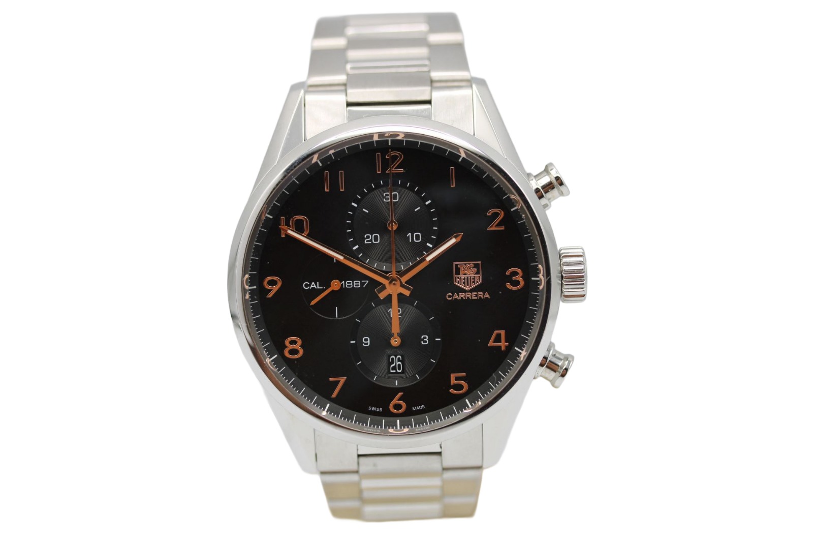 This Tag Heuer Carrera CAR2014.BA0799 has a black arabic dial and a bracelet strap. This Tag Heuer has undergone a thorough inspection of accuracy, functionality and condition at our Tag Heuer certified service centre to determine the level of reconditioning required to meet our strict standards. It has also been checked against our records to ensure authenticity. All our watches have a 24-month warranty for your peace of mind.