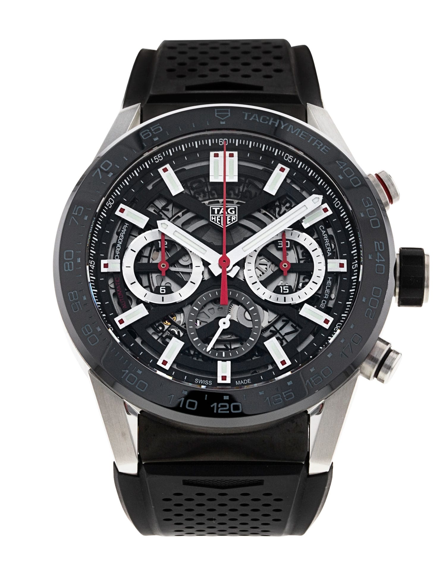 This Tag Heuer Carrera CBG2A10.FT6168 has a skeleton black dial dial and a rubber strap. This Tag Heuer has undergone a thorough inspection of accuracy, functionality and condition at our Tag Heuer certified service centre to determine the level of reconditioning required to meet our strict standards. It has also been checked against our records to ensure authenticity. Our watches have a 24-month warranty for your peace of mind, in conjunction with any remaining manufacturer’s warranty from new or from service.