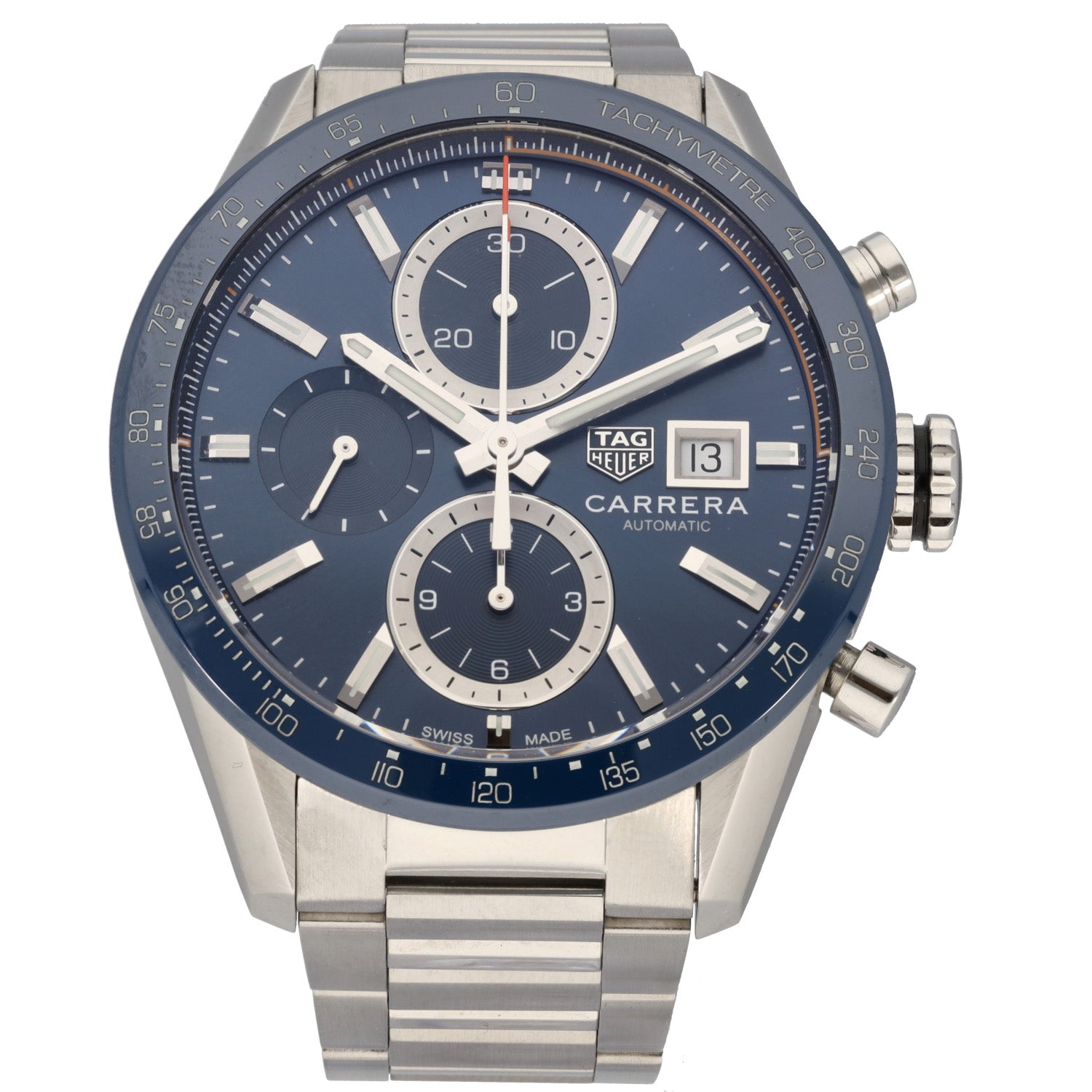 This Tag Heuer Carrera CBM2112.BA0651 has a blue baton dial and a bracelet strap. This Tag Heuer has undergone a thorough inspection of accuracy, functionality and condition at our Tag Heuer certified service centre to determine the level of reconditioning required to meet our strict standards. It has also been checked against our records to ensure authenticity. All our watches have a 24-month warranty for your peace of mind.