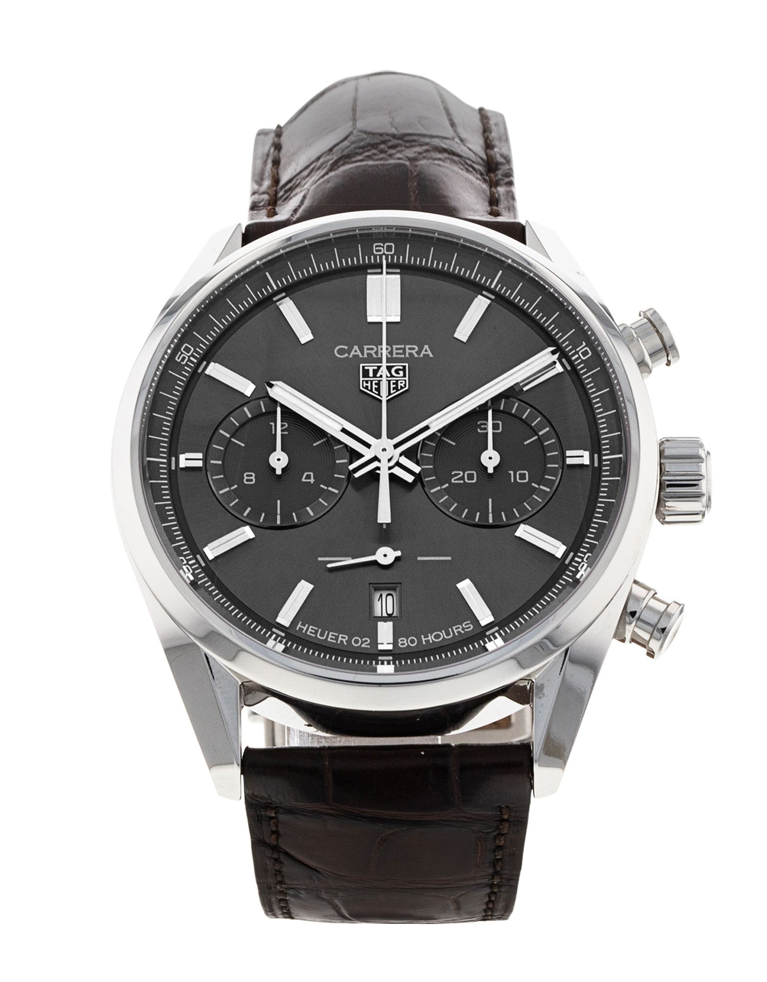 This Tag Heuer Carrera CBN2012.FC6483 has a grey baton dial and a leather strap. This Tag Heuer has undergone a thorough inspection of accuracy, functionality and condition at our Tag Heuer certified service centre to determine the level of reconditioning required to meet our strict standards. It has also been checked against our records to ensure authenticity. All our watches have a 24-month warranty for your peace of mind.