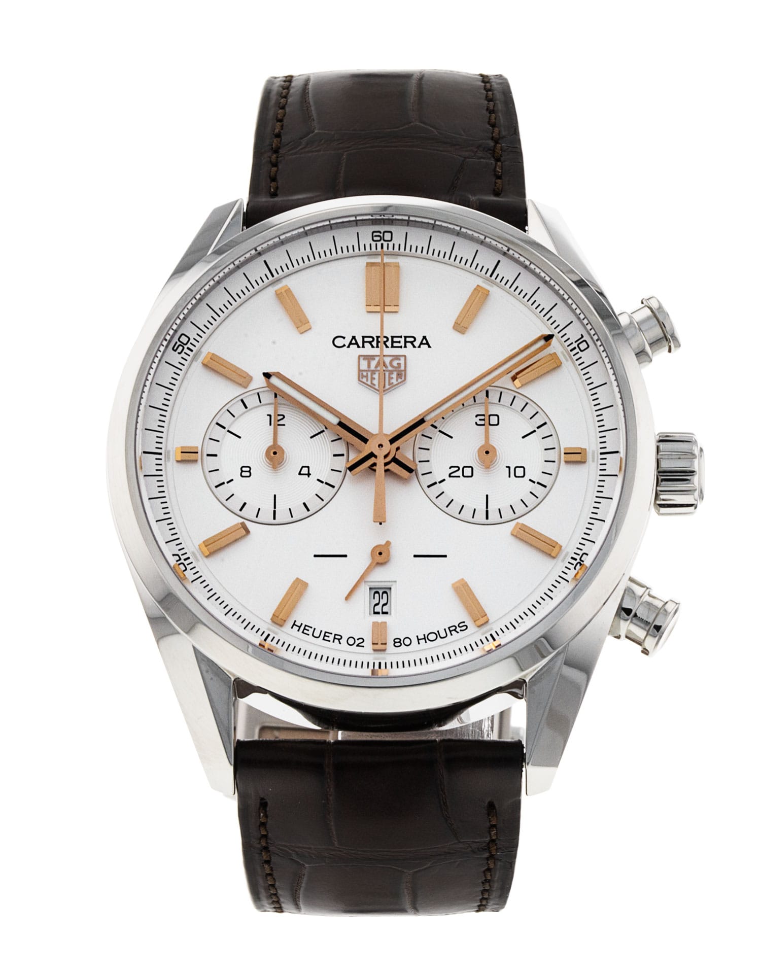 This Tag Heuer Carrera CBN2013.FC6483 has a silver baton dial and a leather strap. This Tag Heuer has undergone a thorough inspection of accuracy, functionality and condition at our Tag Heuer certified service centre to determine the level of reconditioning required to meet our strict standards. It has also been checked against our records to ensure authenticity. All our watches have a 24-month warranty for your peace of mind.