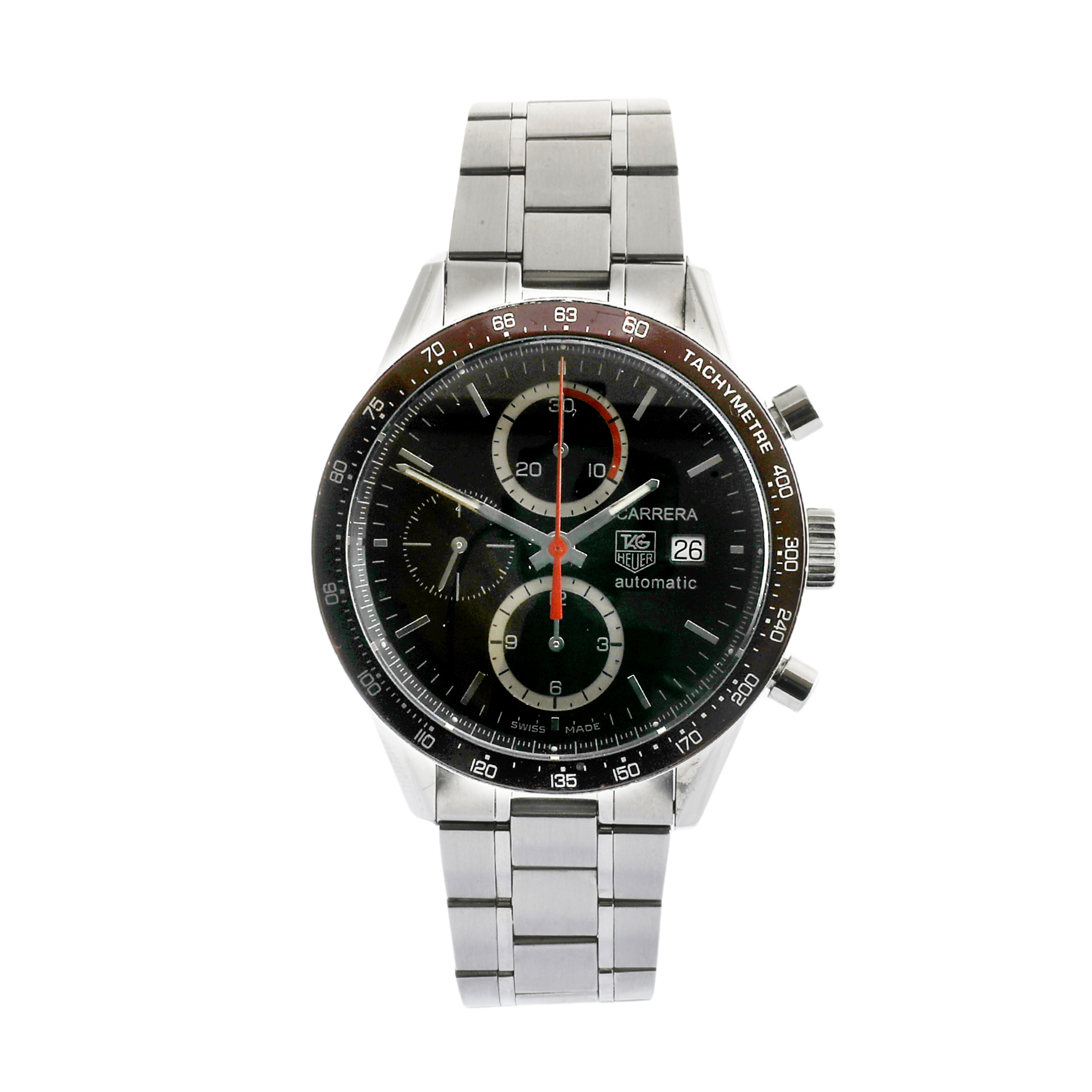 This Tag Heuer Carrera CV2013.BA0786 has a brown baton dial and a bracelet strap. This Tag Heuer has undergone a thorough inspection of accuracy, functionality and condition at our Tag Heuer certified service centre to determine the level of reconditioning required to meet our strict standards. It has also been checked against our records to ensure authenticity. All our watches have a 24-month warranty for your peace of mind.