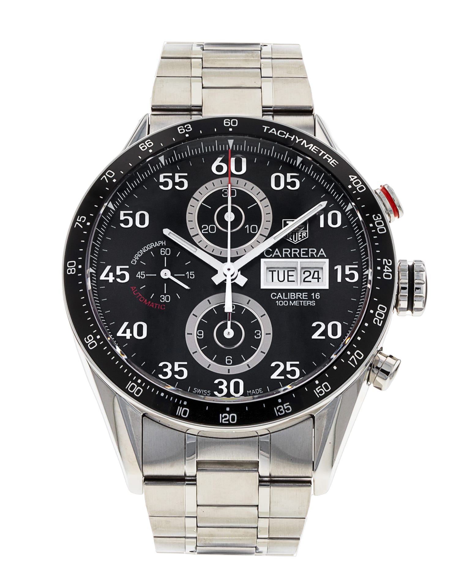 This Tag Heuer Carrera CV2A10.BA0796 has a black dial, black sub dials dial and a bracelet strap. This Tag Heuer has undergone a thorough inspection of accuracy, functionality and condition at our Tag Heuer certified service centre to determine the level of reconditioning required to meet our strict standards. It has also been checked against our records to ensure authenticity. All our watches have a 24-month warranty for your peace of mind.
