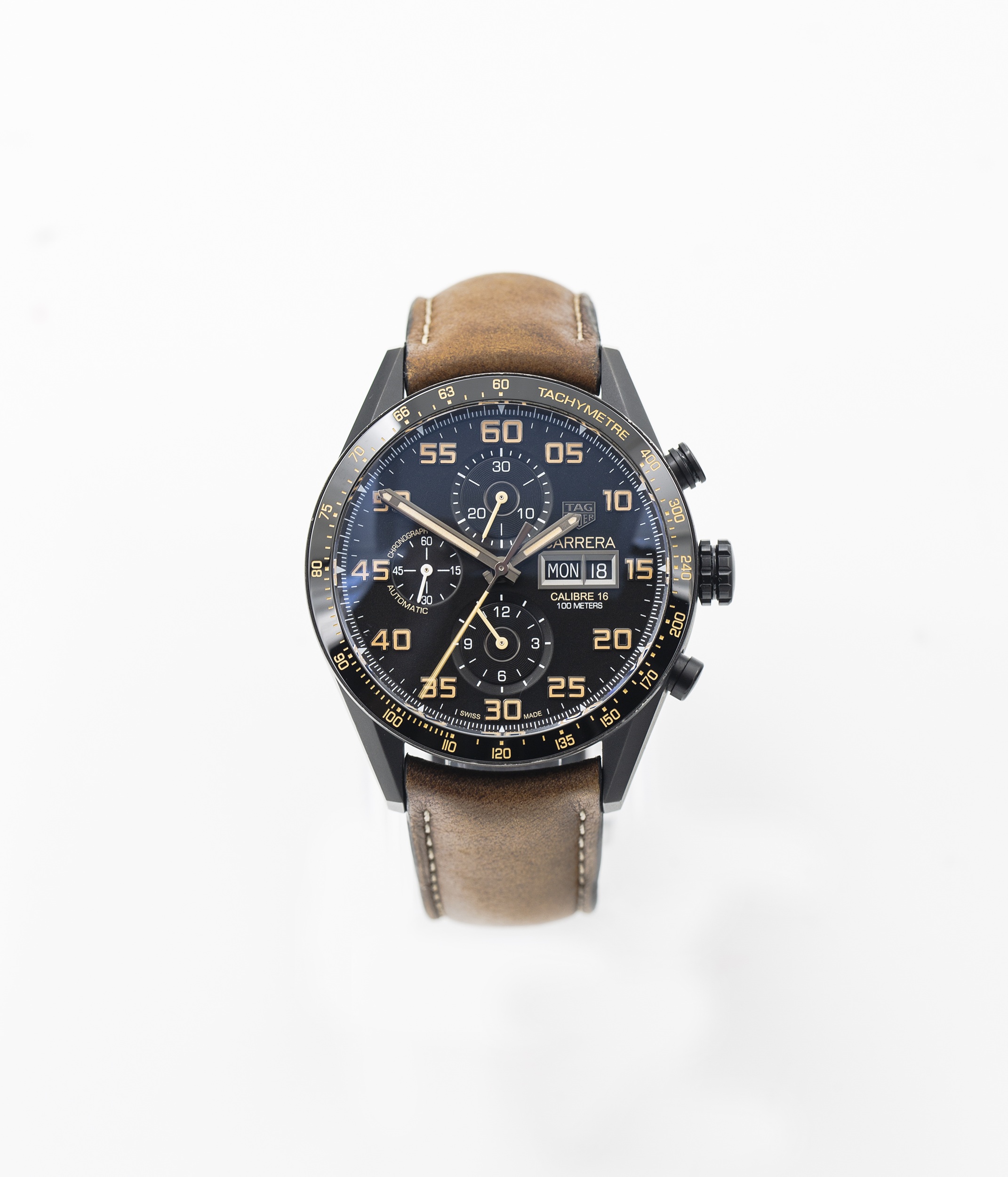 This Tag Heuer Carrera CV2A84.FC6394 has a black arabic dial and a leather strap. This Tag Heuer has undergone a thorough inspection of accuracy, functionality and condition at our Tag Heuer certified service centre to determine the level of reconditioning required to meet our strict standards. It has also been checked against our records to ensure authenticity. All our watches have a 24-month warranty for your peace of mind.
