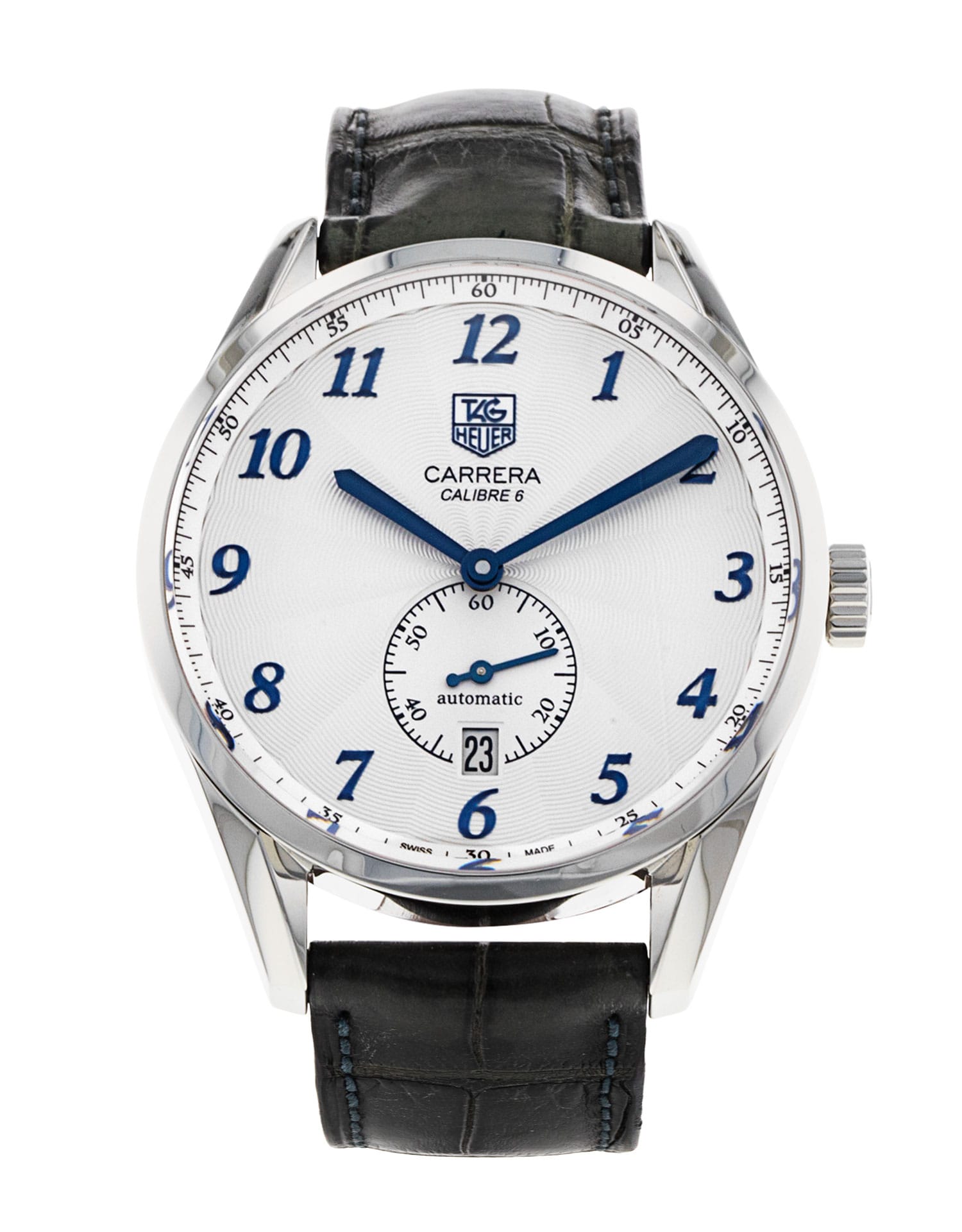 This Tag Heuer Carrera WAS2111.FC6293 has a silver arabic dial and a leather strap. This Tag Heuer has undergone a thorough inspection of accuracy, functionality and condition at our Tag Heuer certified service centre to determine the level of reconditioning required to meet our strict standards. It has also been checked against our records to ensure authenticity. All our watches have a 24-month warranty for your peace of mind.