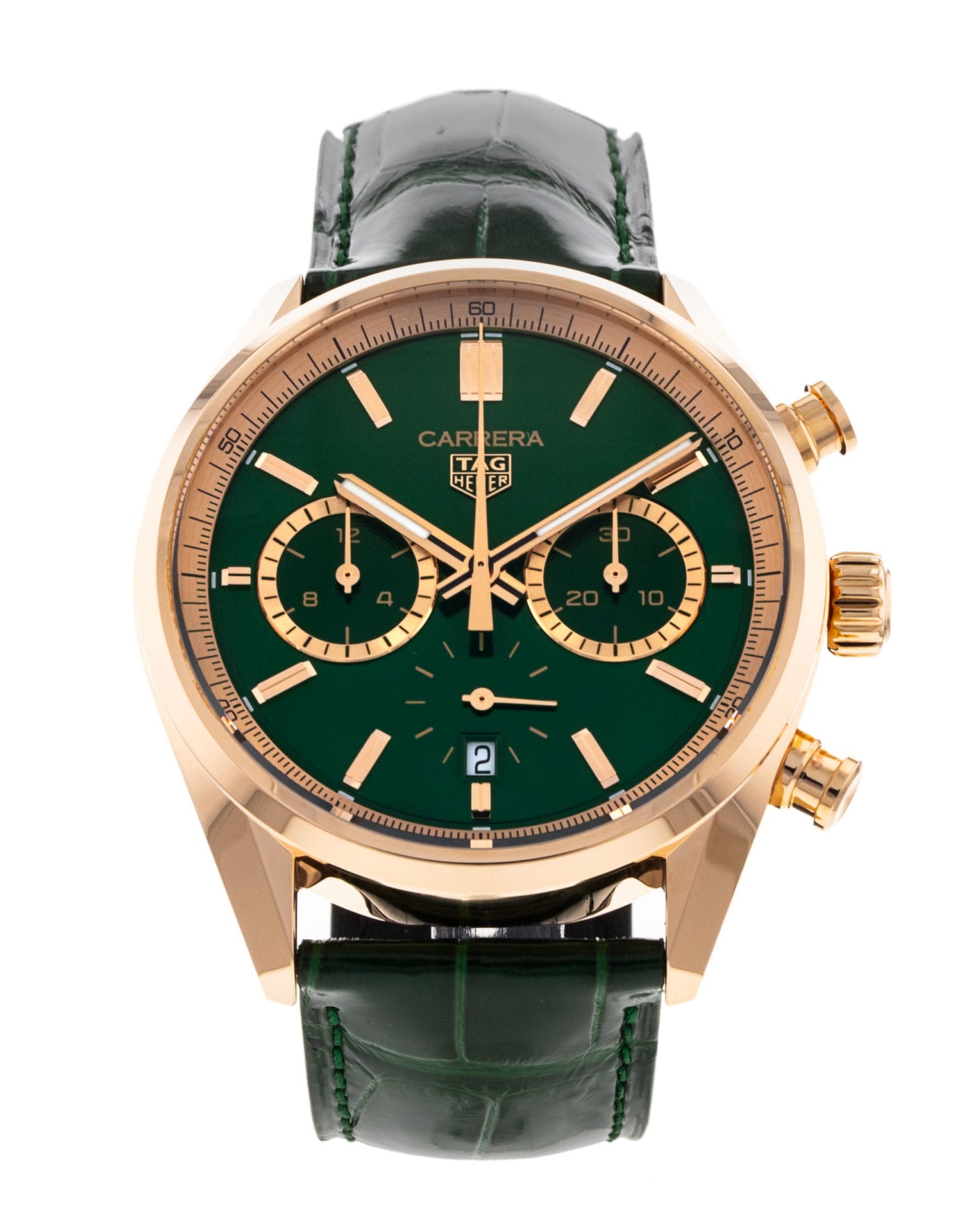 This Tag Heuer Carrera CBN2046.FC8320 has a green baton dial and a leather strap. This Tag Heuer has undergone a thorough inspection of accuracy, functionality and condition at our Tag Heuer certified service centre to determine the level of reconditioning required to meet our strict standards. It has also been checked against our records to ensure authenticity. Our watches have a 24-month warranty for your peace of mind, in conjunction with any remaining manufacturer’s warranty from new or from service.