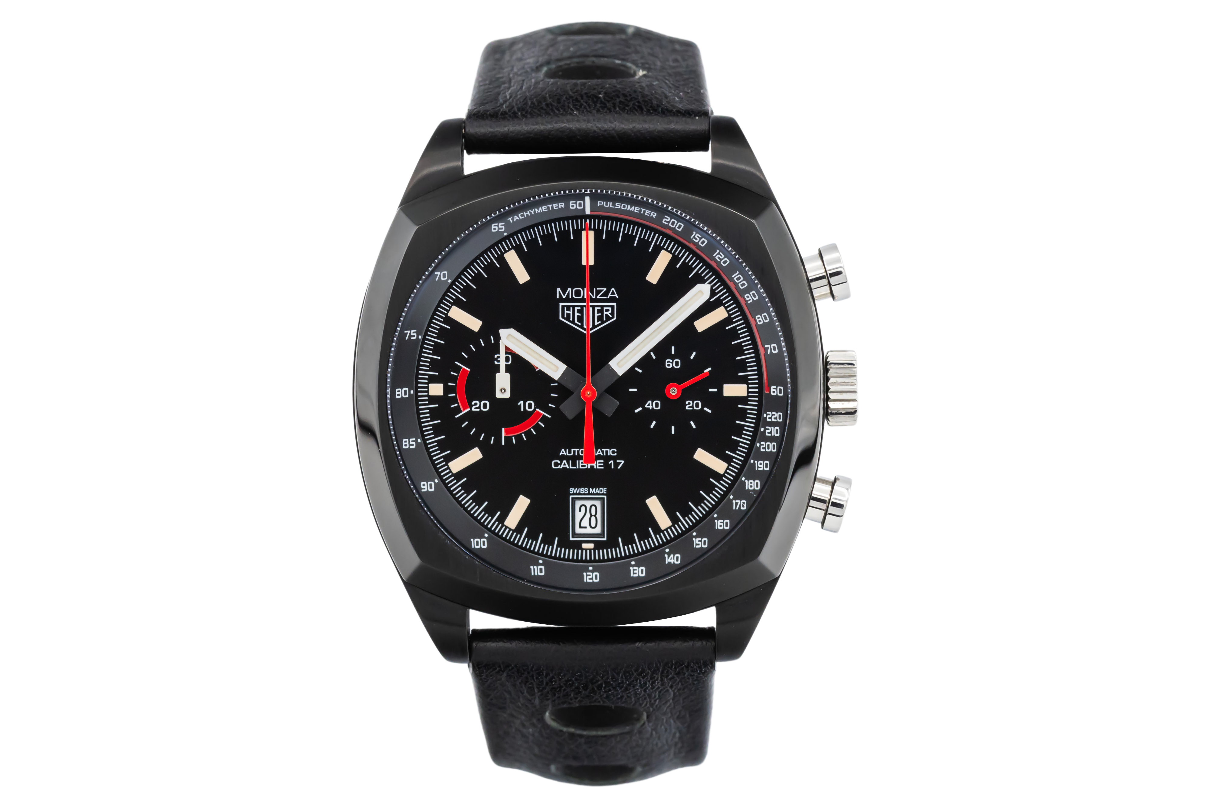 This Tag Heuer Classic Monza CR2080.FC6375 has a black baton dial and a leather strap. This Tag Heuer has undergone a thorough inspection of accuracy, functionality and condition at our Tag Heuer certified service centre to determine the level of reconditioning required to meet our strict standards. It has also been checked against our records to ensure authenticity. All our watches have a 24-month warranty for your peace of mind.