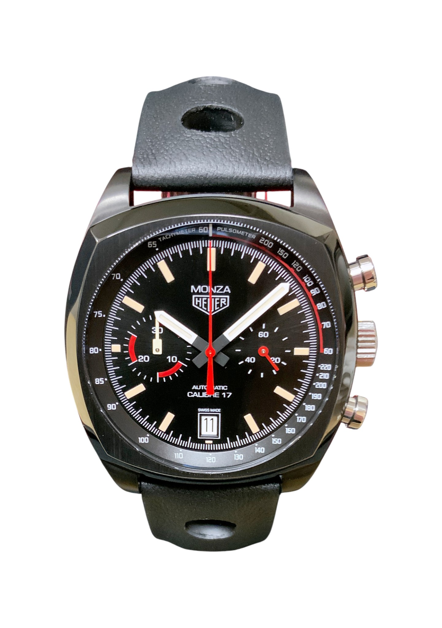 This Tag Heuer Classic Monza CR2080.FC6375 has a black baton dial and a leather strap. This Tag Heuer has undergone a thorough inspection of accuracy, functionality and condition at our Tag Heuer certified service centre to determine the level of reconditioning required to meet our strict standards. It has also been checked against our records to ensure authenticity. Our watches have a 24-month warranty for your peace of mind, in conjunction with any remaining manufacturer’s warranty from new or from service.