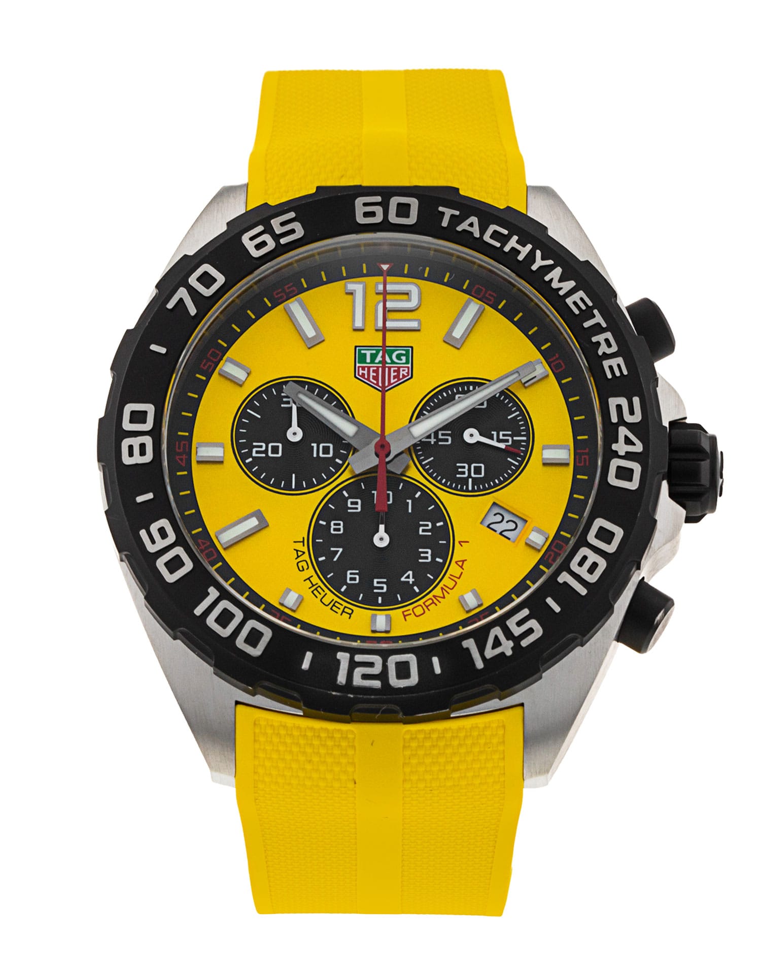 This Tag Heuer Formula 1 CAZ101AM.FT8054 has a yellow baton dial and a rubber strap. This Tag Heuer has undergone a thorough inspection of accuracy, functionality and condition at our Tag Heuer certified service centre to determine the level of reconditioning required to meet our strict standards. It has also been checked against our records to ensure authenticity. All our watches have a 24-month warranty for your peace of mind.