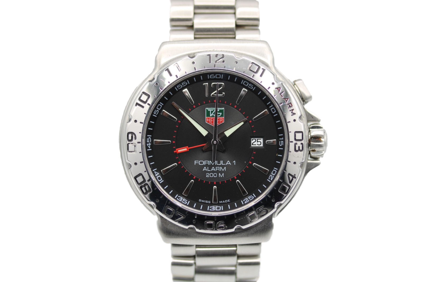 This Tag Heuer Formula 1 WAC111A.BA0850 has a black baton dial and a bracelet strap. This Tag Heuer has undergone a thorough inspection of accuracy, functionality and condition at our Tag Heuer certified service centre to determine the level of reconditioning required to meet our strict standards. It has also been checked against our records to ensure authenticity. All our watches have a 24-month warranty for your peace of mind.
