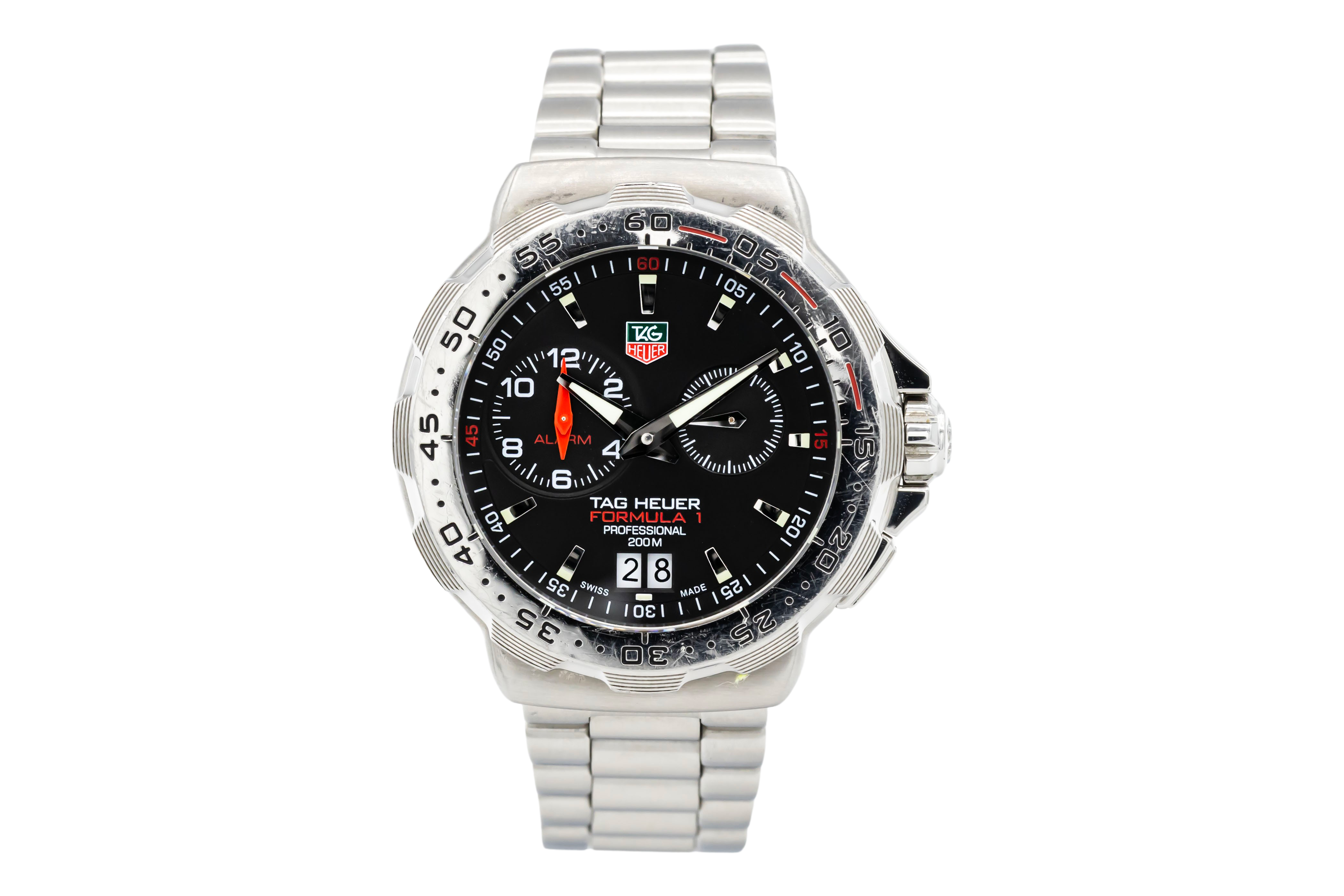 This Tag Heuer Formula 1 WAH111C.BA0850 has a black baton dial and a bracelet strap. This Tag Heuer has undergone a thorough inspection of accuracy, functionality and condition at our Tag Heuer certified service centre to determine the level of reconditioning required to meet our strict standards. It has also been checked against our records to ensure authenticity. All our watches have a 24-month warranty for your peace of mind.