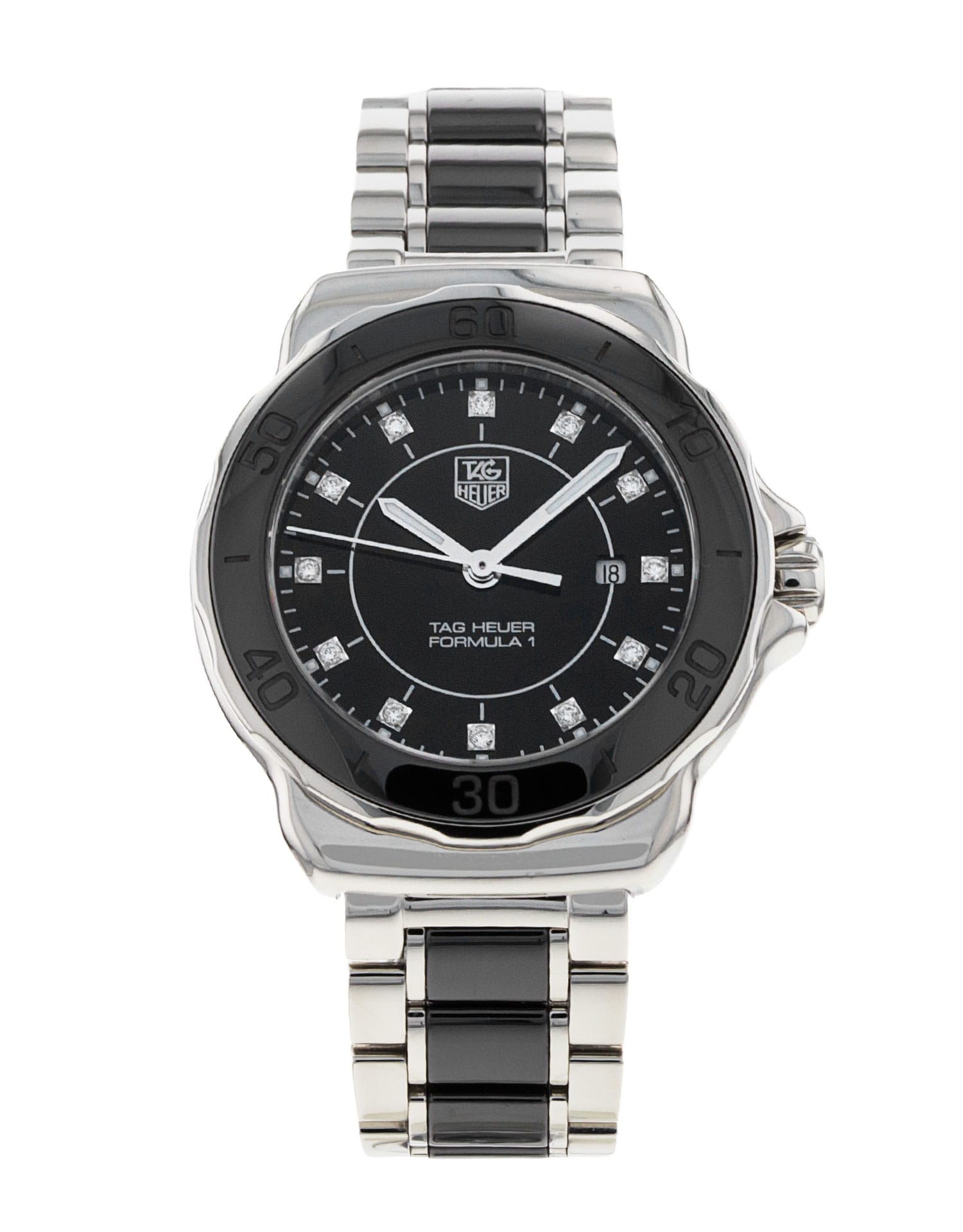 This Tag Heuer Formula 1 WAH1314.BA0867 has a black diamond dial and a bracelet strap. This Tag Heuer has undergone a thorough inspection of accuracy, functionality and condition at our Tag Heuer certified service centre to determine the level of reconditioning required to meet our strict standards. It has also been checked against our records to ensure authenticity. All our watches have a 24-month warranty for your peace of mind.