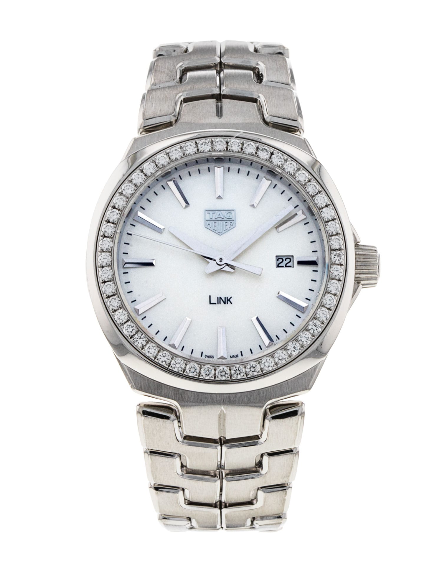 This Tag Heuer Link WBC1314.BA0600 has a mother of pearl white baton dial and a bracelet strap. This Tag Heuer has undergone a thorough inspection of accuracy, functionality and condition at our Tag Heuer certified service centre to determine the level of reconditioning required to meet our strict standards. It has also been checked against our records to ensure authenticity. All our watches have a 24-month warranty for your peace of mind.