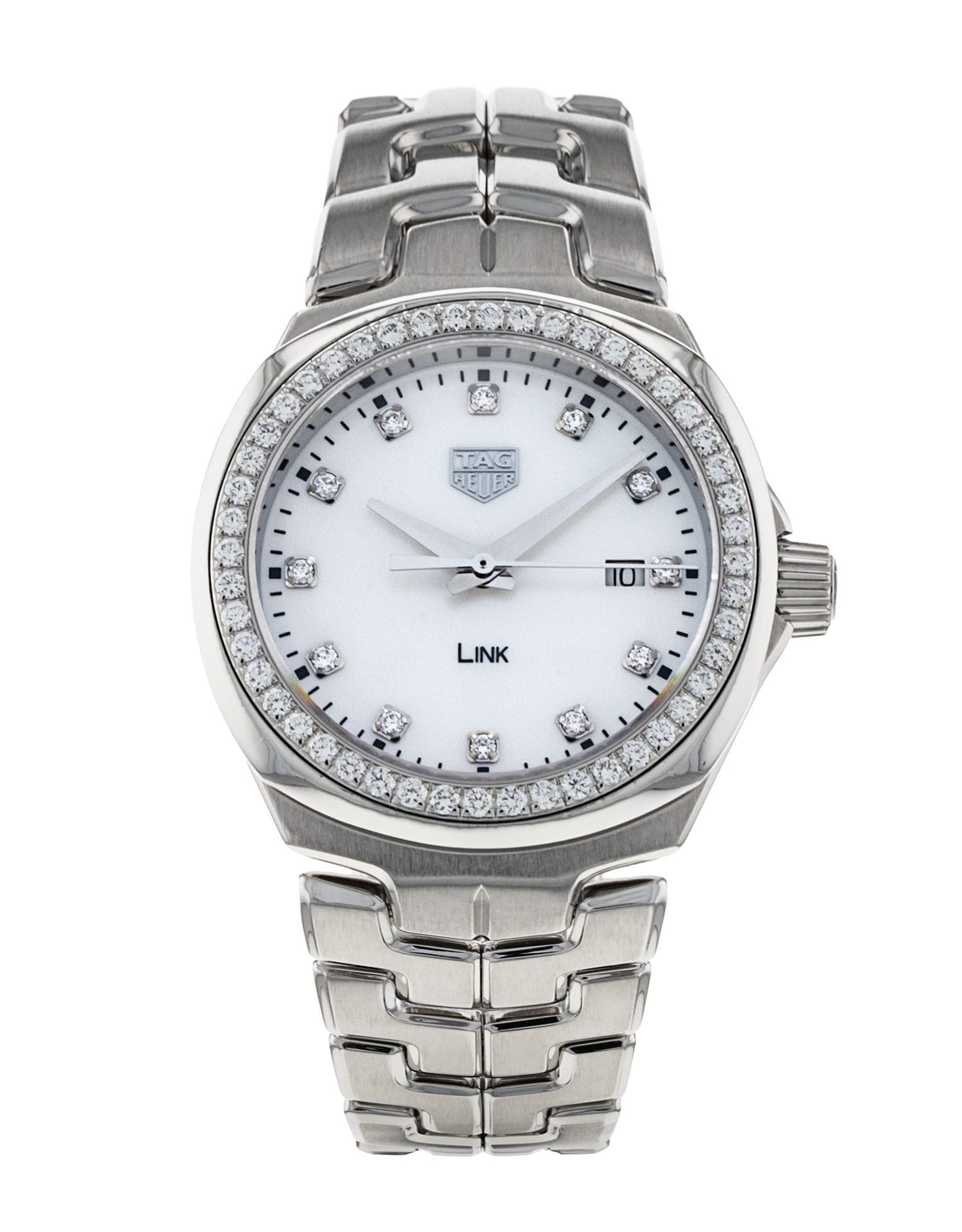 This Tag Heuer Link WBC1316.BA0600 has a mother of pearl white - diamond dial and a bracelet strap. This Tag Heuer has undergone a thorough inspection of accuracy, functionality and condition at our Tag Heuer certified service centre to determine the level of reconditioning required to meet our strict standards. It has also been checked against our records to ensure authenticity. All our watches have a 24-month warranty for your peace of mind.