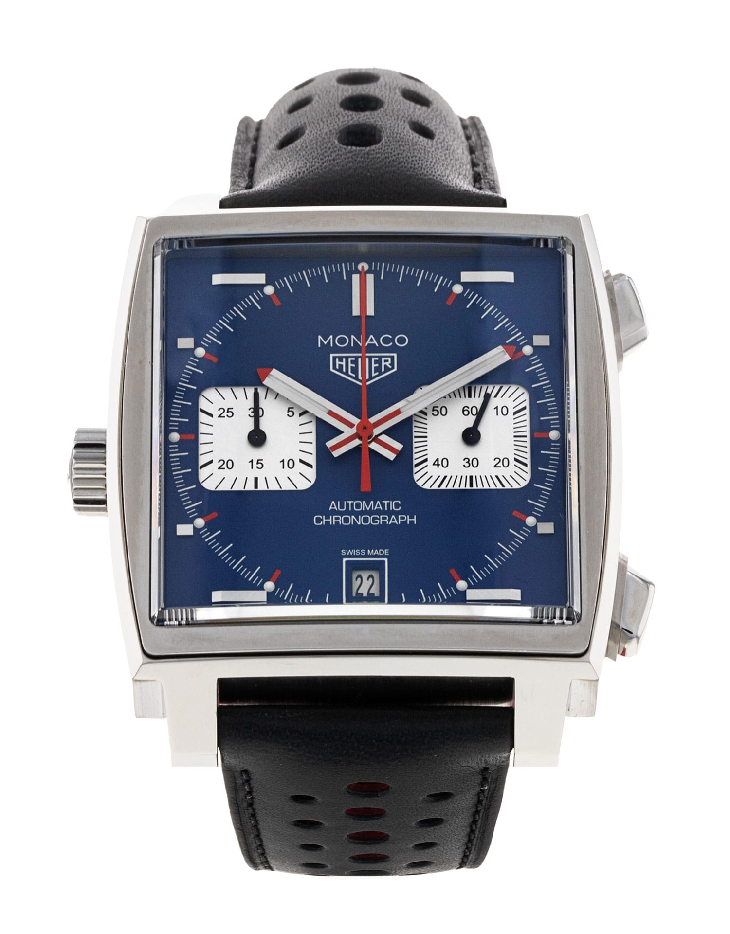 This Tag Heuer Monaco CAW211P.FC6356 has a blue baton dial and a leather strap. This Tag Heuer has undergone a thorough inspection of accuracy, functionality and condition at our Tag Heuer certified service centre to determine the level of reconditioning required to meet our strict standards. It has also been checked against our records to ensure authenticity. All our watches have a 24-month warranty for your peace of mind.