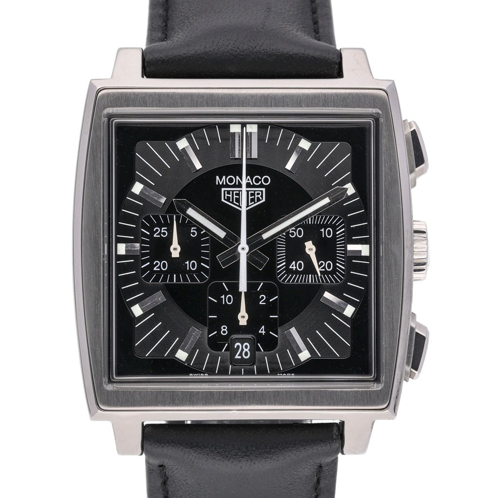 This Tag Heuer Monaco CS2111 has a black baton dial and a leather strap. This Tag Heuer has undergone a thorough inspection of accuracy, functionality and condition at our Tag Heuer certified service centre to determine the level of reconditioning required to meet our strict standards. It has also been checked against our records to ensure authenticity. All our watches have a 24-month warranty for your peace of mind.