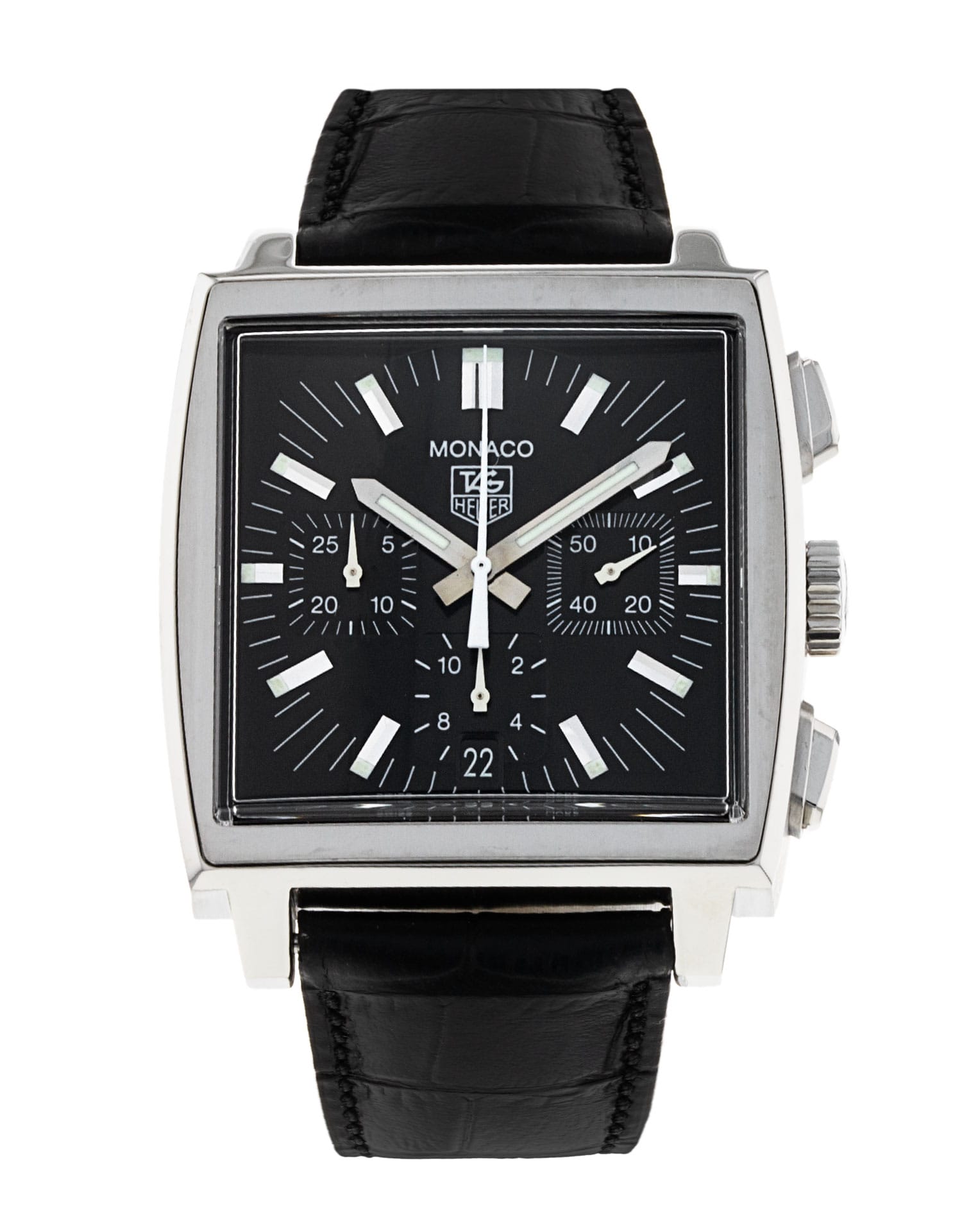 This Tag Heuer Monaco CW2111.FC6177 has a black baton dial and a leather strap. This Tag Heuer has undergone a thorough inspection of accuracy, functionality and condition at our Tag Heuer certified service centre to determine the level of reconditioning required to meet our strict standards. It has also been checked against our records to ensure authenticity. All our watches have a 24-month warranty for your peace of mind.