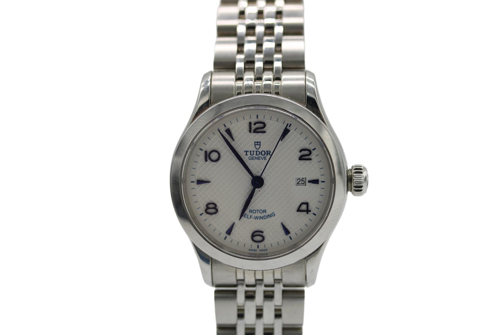 This Tudor 1926 M91350-0005 has a silver arabic dial and a bracelet strap. This Tudor has undergone a thorough inspection of water resistance, accuracy, functionality and condition to determine the level of reconditioning required to meet our strict standards. It has also been referenced against technical documents and manufacturer records where available to ensure authenticity and a clean history. All our watches have a 24-month warranty for your peace of mind. One of our skilled polishing technicians has removed marks on the case and bracelet of this watch, brought about by daily wear and tear, which is why this watch does not come with the remaining manufacturer’s warranty.