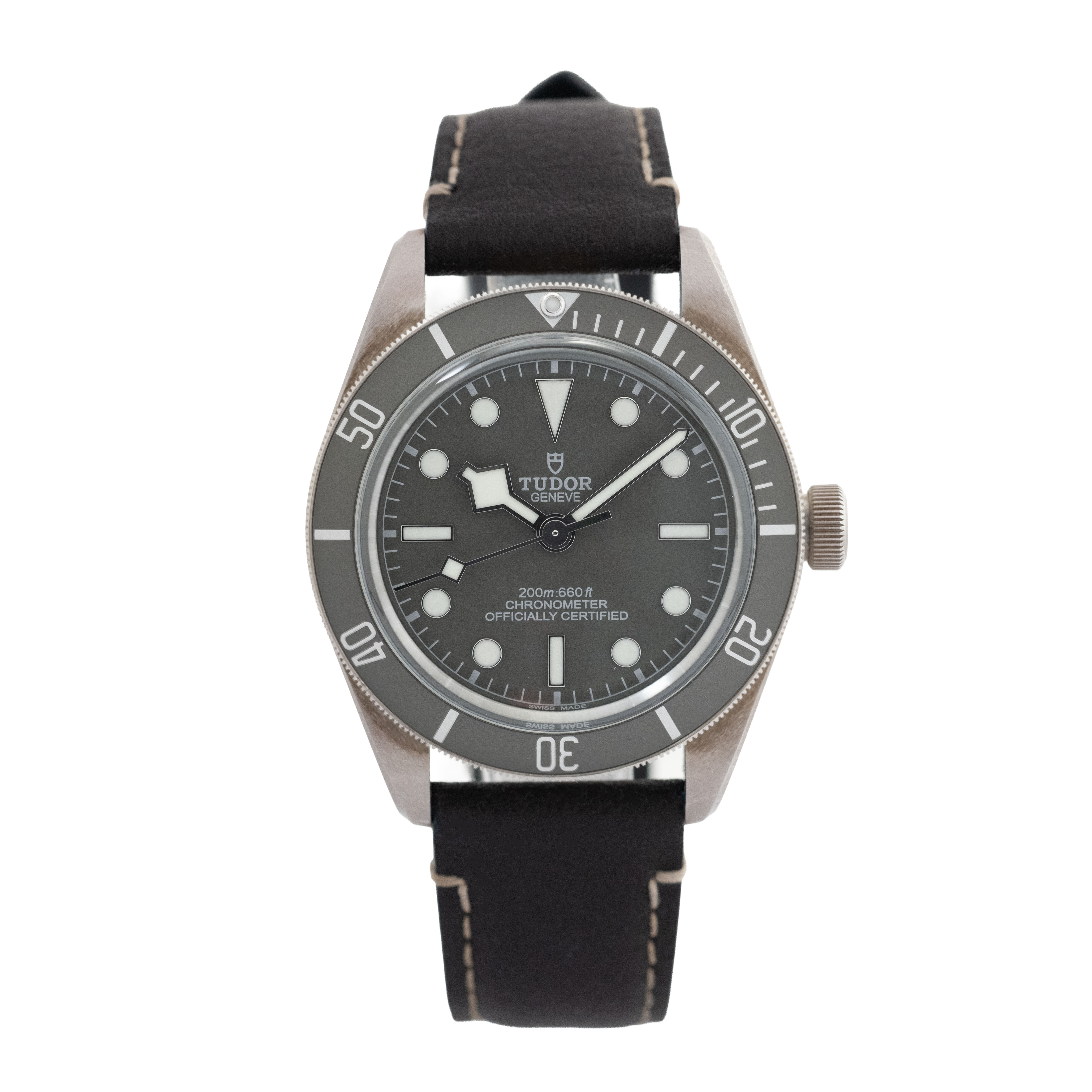 This Tudor Black Bay 58 M79010SG-0001 has a taupe dial and a leather strap. This Tudor has undergone a thorough inspection of water resistance, accuracy, functionality and condition to determine the level of reconditioning required to meet our strict standards. It has also been referenced against technical documents and manufacturer records where available to ensure authenticity and a clean history. Our watches have a 24-month warranty for your peace of mind, in conjunction with any remaining manufacturer’s warranty from new or from service. To maintain the manufacturer’s warranty on this watch, it has not been polished in our service centre.