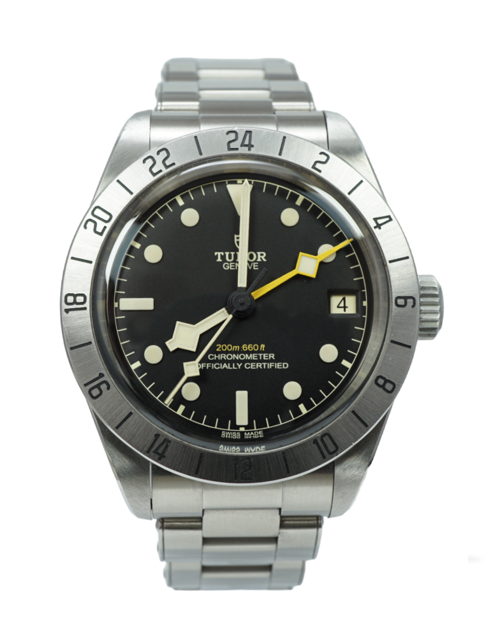 This Tudor Black Bay Pro M79470-0001 has a black dial and a bracelet strap. This Tudor has undergone a thorough inspection of water resistance, accuracy, functionality and condition to determine the level of reconditioning required to meet our strict standards. It has also been referenced against technical documents and manufacturer records where available to ensure authenticity and a clean history. All our watches have a 24-month warranty for your peace of mind. One of our skilled polishing technicians has removed marks on the case and bracelet of this watch, brought about by daily wear and tear, which is why this watch does not come with the remaining manufacturer’s warranty.