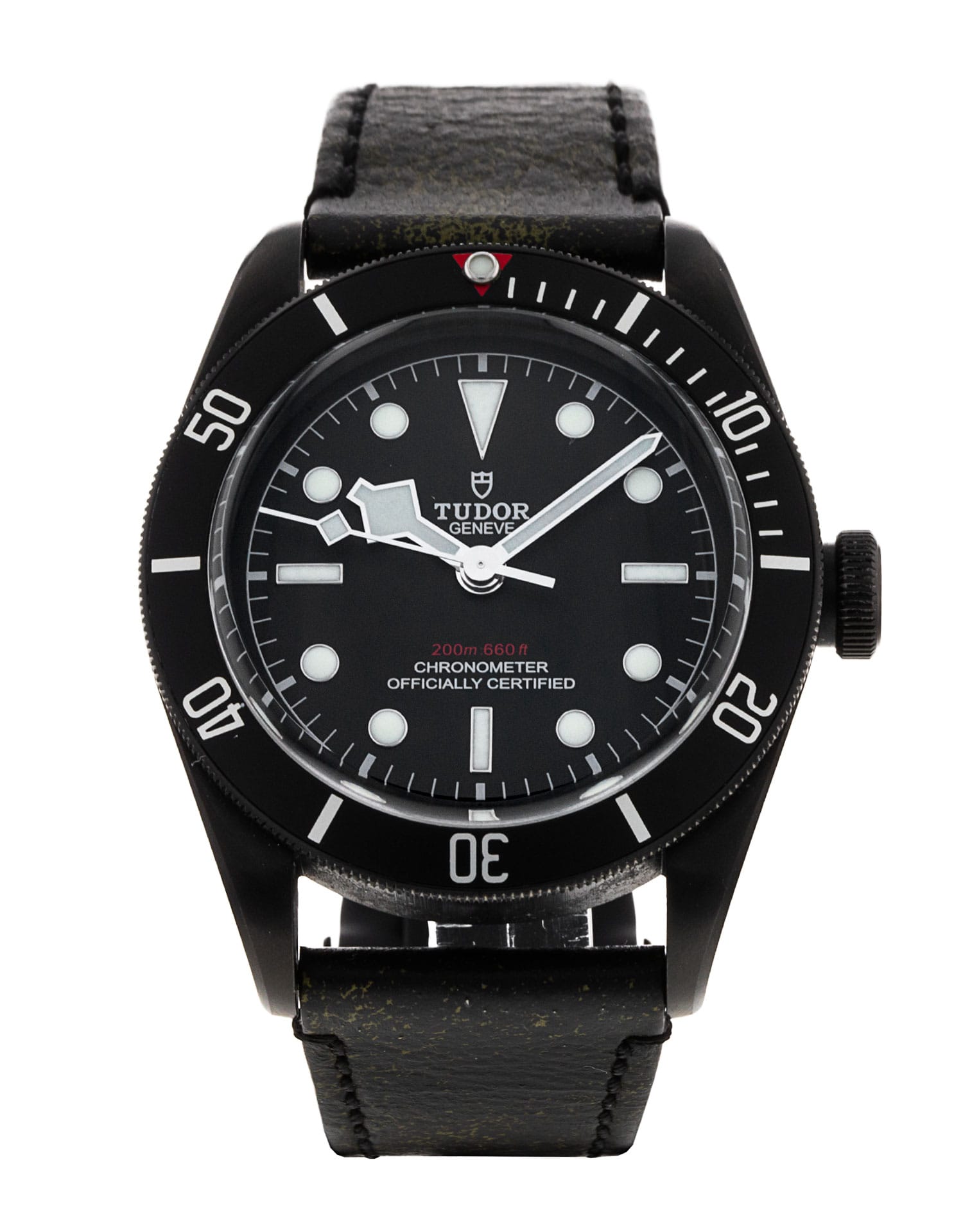 This Tudor Black Bay M79230DK-0007 has a black dial and a leather strap. This Tudor has undergone a thorough inspection of water resistance, accuracy, functionality and condition to determine the level of reconditioning required to meet our strict standards. It has also been referenced against technical documents and manufacturer records where available to ensure authenticity and a clean history. All our watches have a 24-month warranty for your peace of mind. One of our skilled polishing technicians has removed marks on the case and bracelet of this watch, brought about by daily wear and tear, which is why this watch does not come with the remaining manufacturer’s warranty.