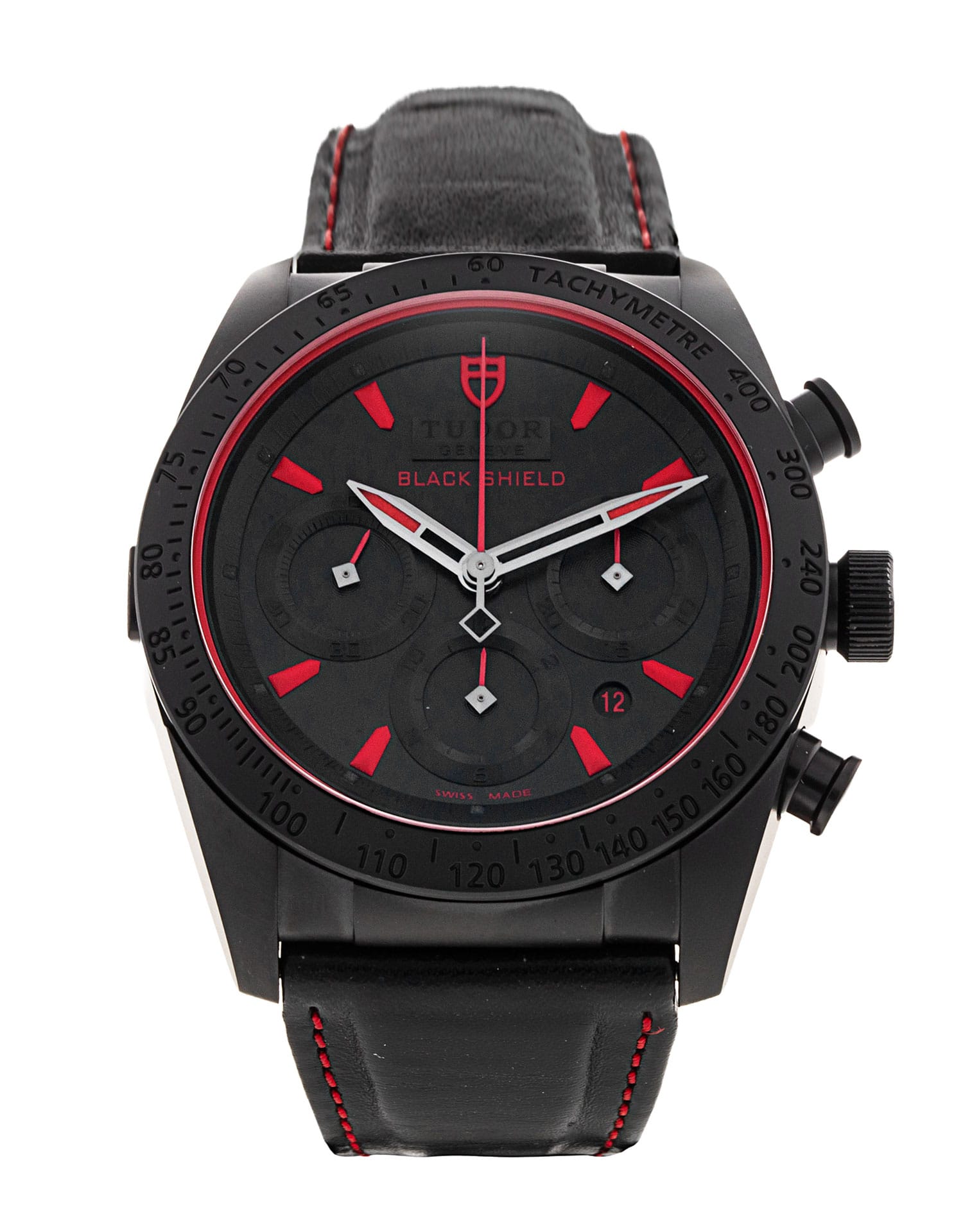 This Tudor Fastrider Chronograph 42000CR has a black baton dial and a leather strap. This Tudor has undergone a thorough inspection of water resistance, accuracy, functionality and condition to determine the level of reconditioning required to meet our strict standards. It has also been referenced against technical documents and manufacturer records where available to ensure authenticity and a clean history. All our watches have a 24-month warranty for your peace of mind. One of our skilled polishing technicians has removed marks on the case and bracelet of this watch, brought about by daily wear and tear, which is why this watch does not come with the remaining manufacturer’s warranty.