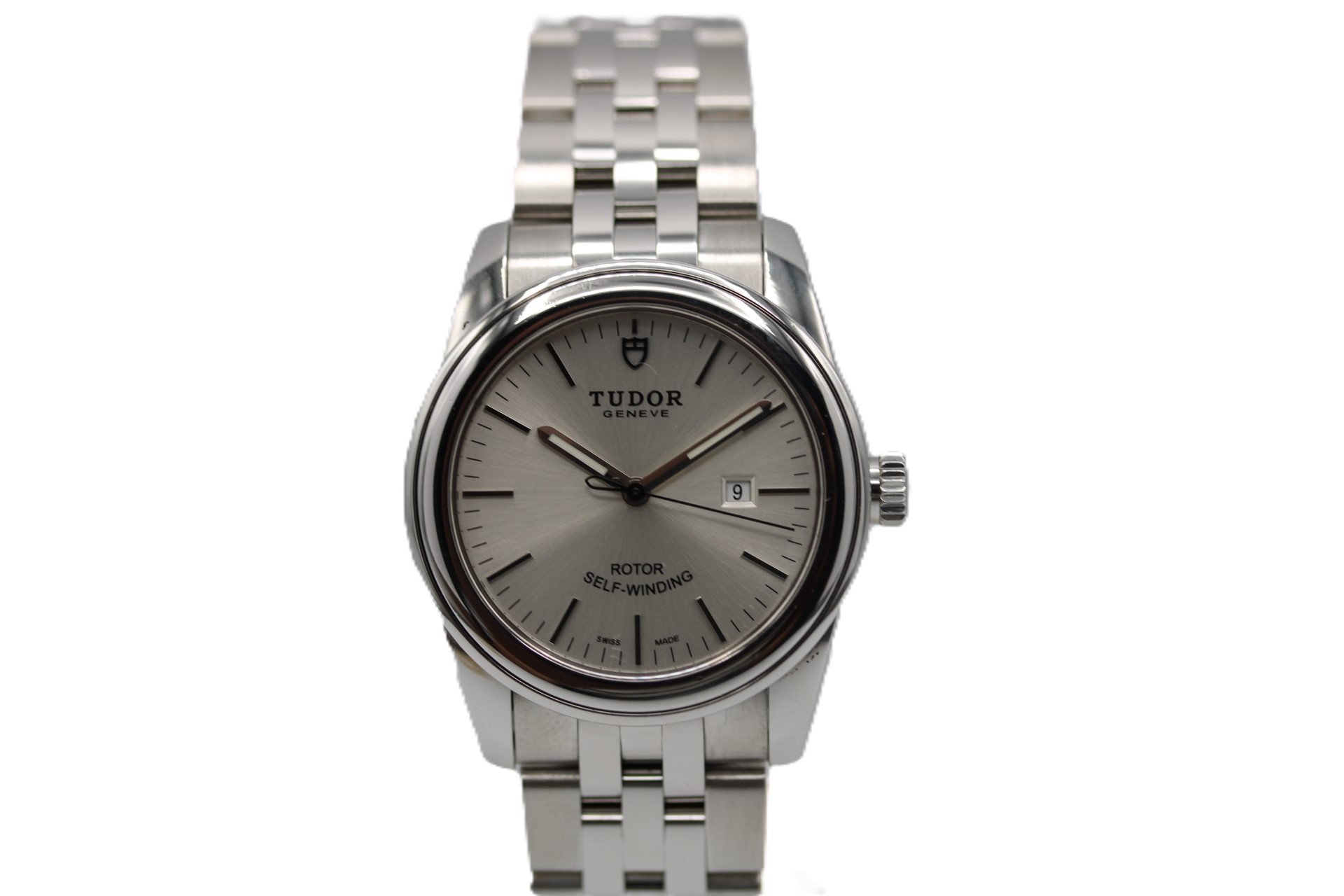 This Tudor Glamour Date M53000-0079 has a white baton dial and a bracelet strap. This Tudor has undergone a thorough inspection of water resistance, accuracy, functionality and condition to determine the level of reconditioning required to meet our strict standards. It has also been referenced against technical documents and manufacturer records where available to ensure authenticity and a clean history. All our watches have a 24-month warranty for your peace of mind. One of our skilled polishing technicians has removed marks on the case and bracelet of this watch, brought about by daily wear and tear, which is why this watch does not come with the remaining manufacturer’s warranty.
