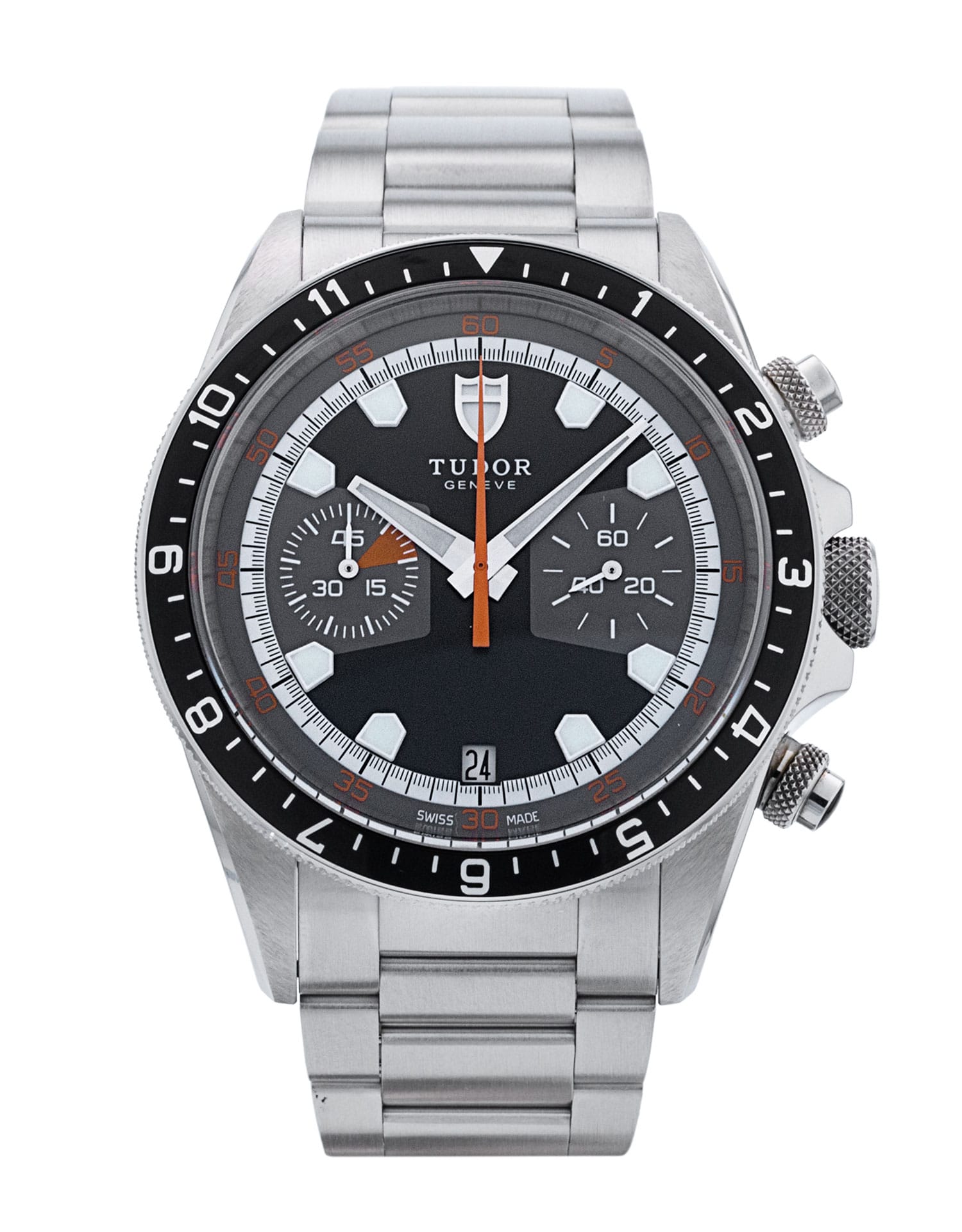 This Tudor Heritage Chronograph M70330N-0005 has a black baton dial and a bracelet strap. This Tudor has undergone a thorough inspection of water resistance, accuracy, functionality and condition to determine the level of reconditioning required to meet our strict standards. It has also been referenced against technical documents and manufacturer records where available to ensure authenticity and a clean history. All our watches have a 24-month warranty for your peace of mind. One of our skilled polishing technicians has removed marks on the case and bracelet of this watch, brought about by daily wear and tear, which is why this watch does not come with the remaining manufacturer’s warranty.