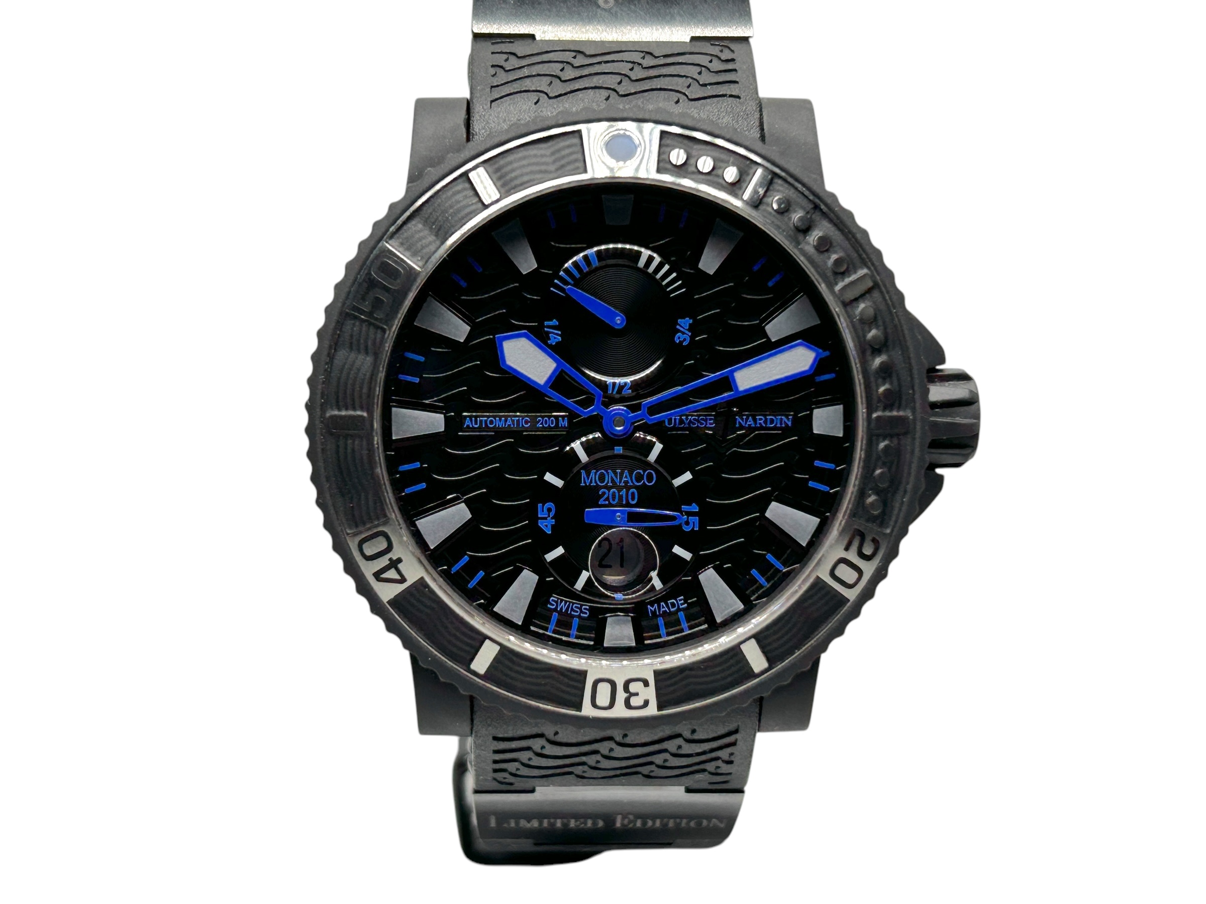 This Ulysse Nardin Marine 263-93-3/MON has a black baton dial and a rubber strap. This Ulysse Nardin has undergone a thorough inspection of water resistance, accuracy, functionality and condition to determine the level of reconditioning required to meet our strict standards. It has also been referenced against technical documents and manufacturer records where available to ensure authenticity and a clean history. All our watches have a 24-month warranty for your peace of mind.