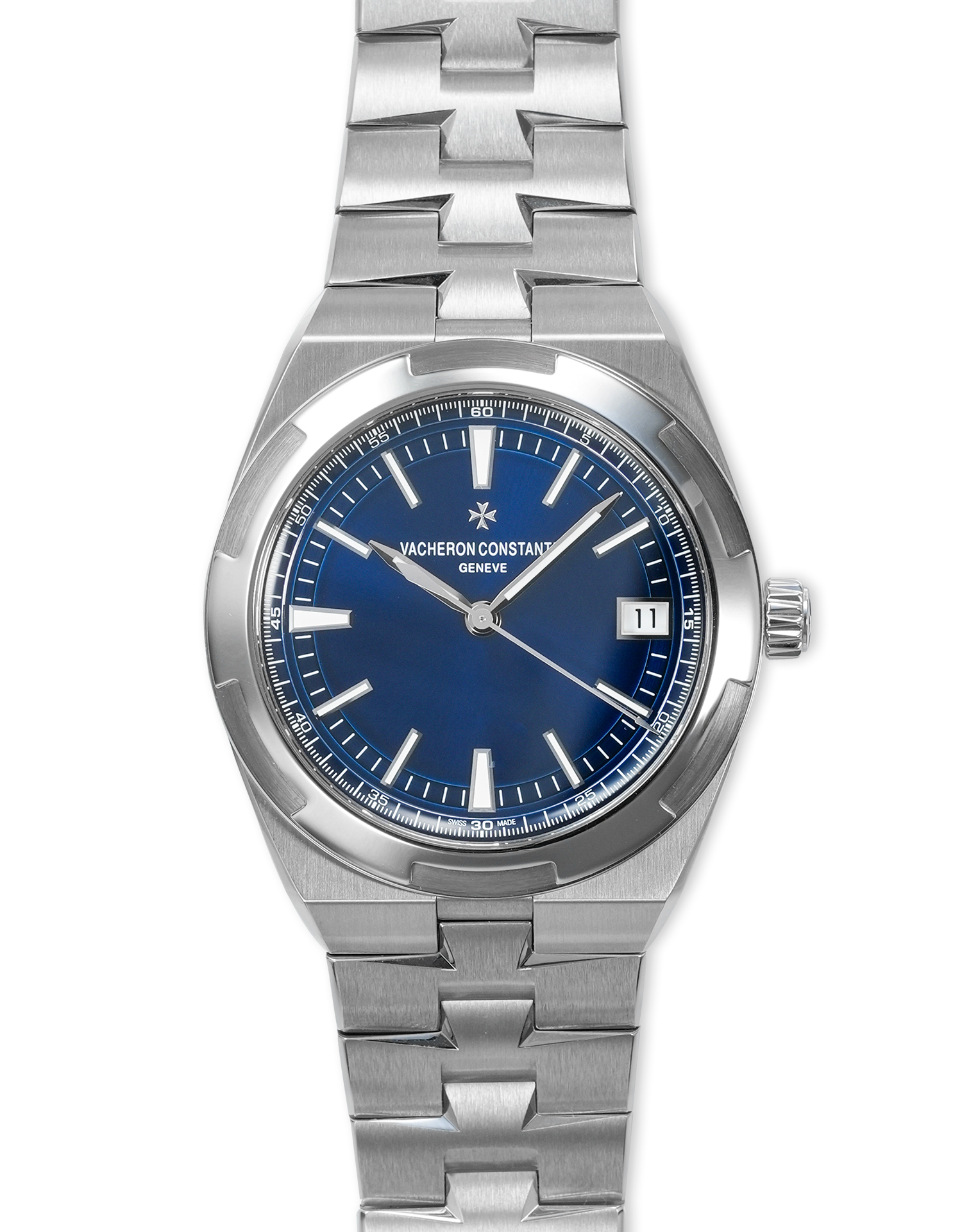 This Vacheron Constantin Overseas 4500V/110A-B128 has a blue baton dial and a bracelet strap. This Vacheron Constantin has undergone a thorough inspection of accuracy, functionality and condition at our Vacheron Constantin certified service centre to determine the level of reconditioning required to meet our strict standards. It has also been checked against our records to ensure authenticity. All our watches have a 24-month warranty for your peace of mind.