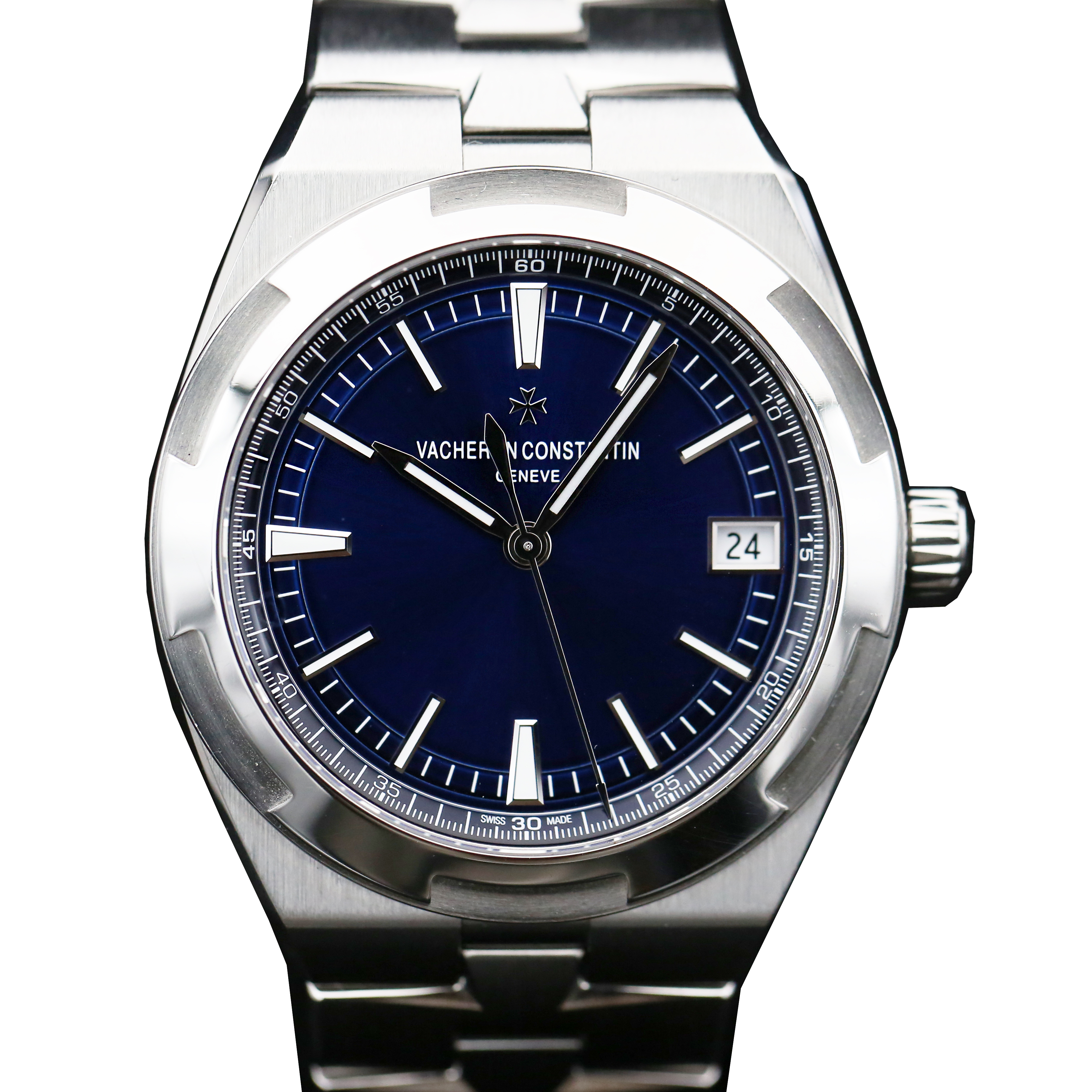 This Vacheron Constantin Overseas 4500V/110A-B128 has a blue baton dial and a bracelet strap. This Vacheron Constantin has undergone a thorough inspection of accuracy, functionality and condition at our Vacheron Constantin certified service centre to determine the level of reconditioning required to meet our strict standards. It has also been checked against our records to ensure authenticity. All our watches have a 24-month warranty for your peace of mind.