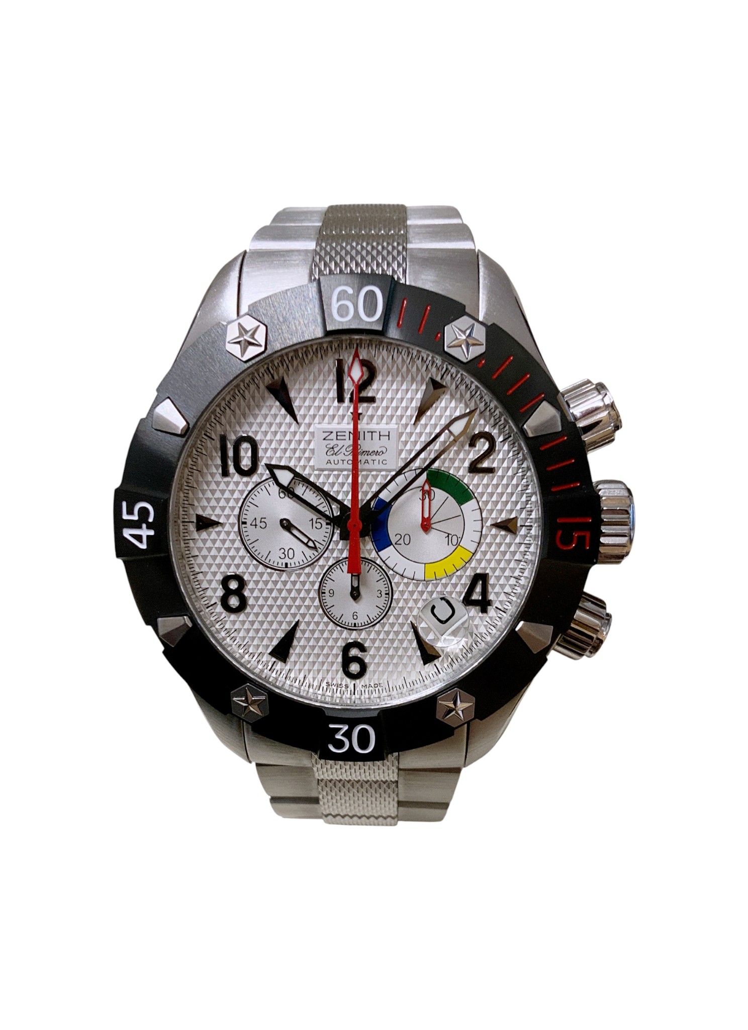 This Zenith Defy 03.0526.4000/01.M526 has a white arabic dial and a bracelet strap. This Zenith has undergone a thorough inspection of water resistance, accuracy, functionality and condition to determine the level of reconditioning required to meet our strict standards. It has also been referenced against technical documents and manufacturer records where available to ensure authenticity and a clean history. Our watches have a 24-month warranty for your peace of mind, in conjunction with any remaining manufacturer’s warranty from new or from service.