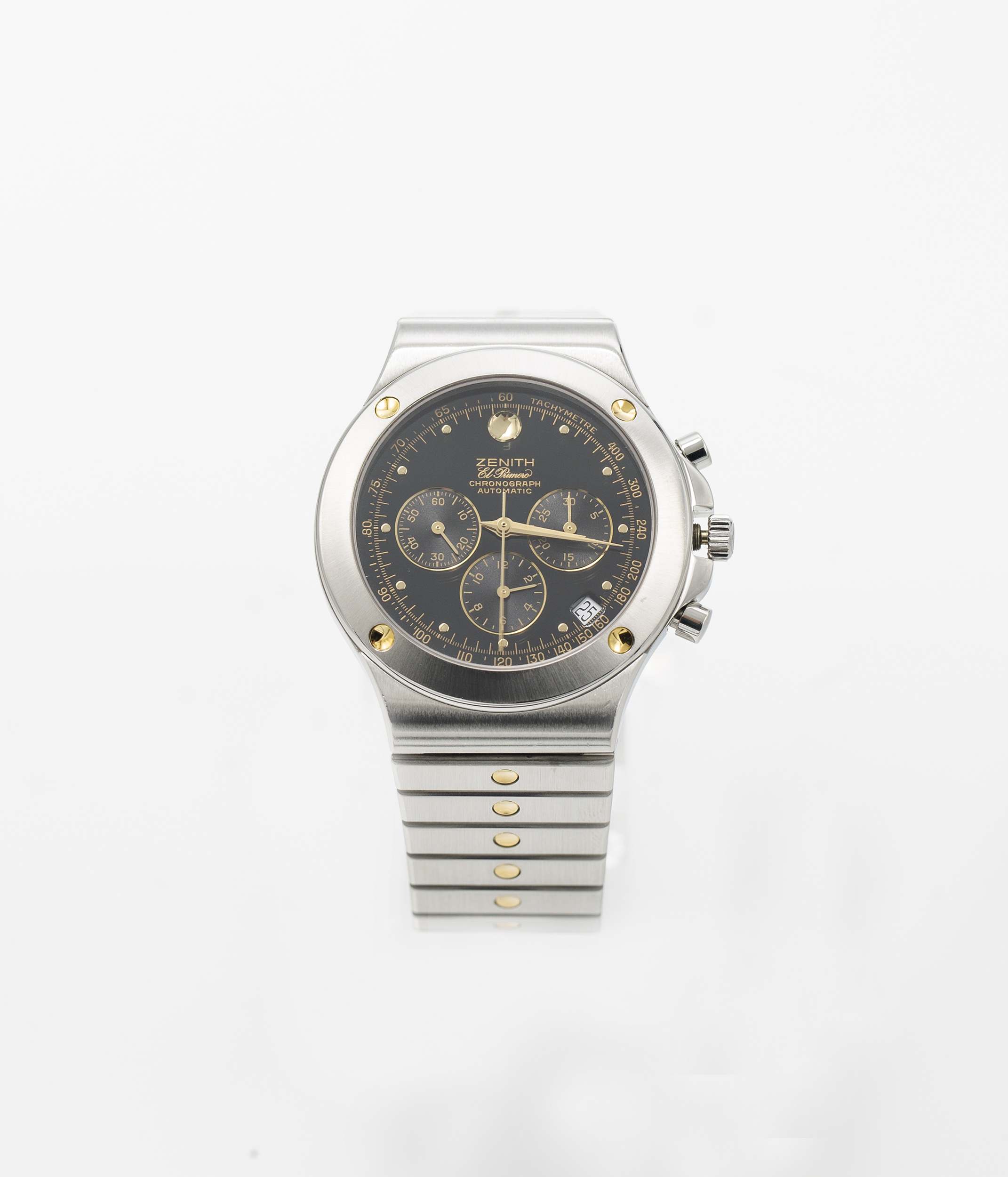 This Zenith El Primero 59.0010.400 has a black baton dial and a bracelet strap. This Zenith has undergone a thorough inspection of water resistance, accuracy, functionality and condition to determine the level of reconditioning required to meet our strict standards. It has also been referenced against technical documents and manufacturer records where available to ensure authenticity and a clean history. All our watches have a 24-month warranty for your peace of mind.